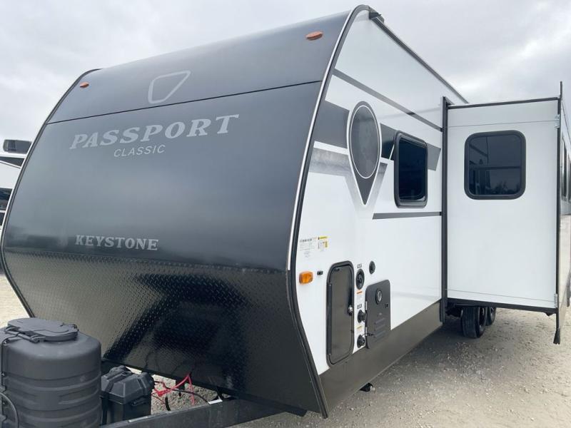 Comfort is found all throughout each one of these Keystone RV Passport Classic travel trailers! They are built with a heated and enclosed underbelly, tinted safety glass windows, and a fully walkable roof for added durability. There are also leaf spring axles, a new Keyed A-Like locking system, and a new glass entry door with a built-in shade for privacy. Inside, you'll find deluxe night shades, residential-style bathroom countertops, LED lighting throughout, and new custom metal window valances to name a few comforts.