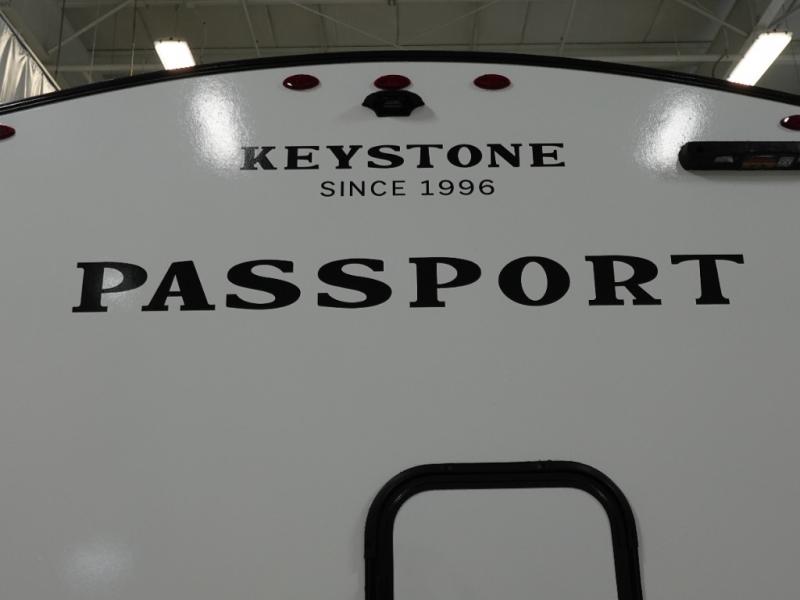 With any Keystone Passport Super Lite travel trailer you will enjoy lightweight towing and lots of interior comforts! The power tongue jack lets you hitch up at the drop of a hat, and the Dexter torsion axle rubber ride suspension will make towing easier than ever. You will appreciate having power stabilizer jacks for quick setup and an exterior convenience center to monitor tank levels. These trailers are constructed with a seamless, laminated and gel-coated filon exterior, 80% tinted safety glass windows, and a one-piece polypropylene underbelly. The interior will have you feeling right at home with residential durable Beauflor vinyl flooring, deluxe night shades, and seamless kitchen countertops to name a few comforts.