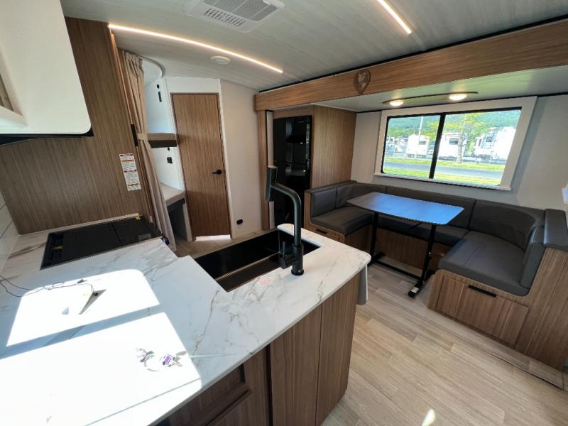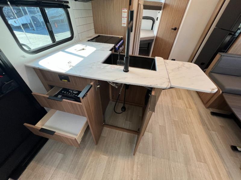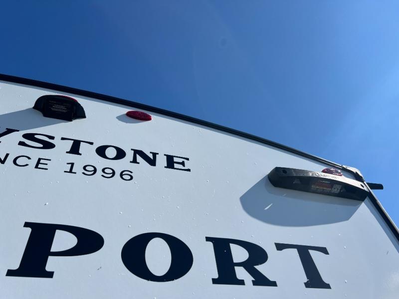 With any Keystone Passport Super Lite travel trailer you will enjoy lightweight towing and lots of interior comforts! The power tongue jack lets you hitch up at the drop of a hat, and the Dexter torsion axle rubber ride suspension will make towing easier than ever. You will appreciate having power stabilizer jacks for quick setup and an exterior convenience center to monitor tank levels. These trailers are constructed with a seamless, laminated and gel-coated filon exterior, 80% tinted safety glass windows, and a one-piece polypropylene underbelly. The interior will have you feeling right at home with residential durable Beauflor vinyl flooring, deluxe night shades, and seamless kitchen countertops to name a few comforts.