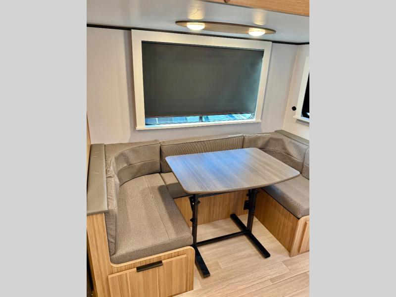 With any Keystone Passport Super Lite travel trailer you will enjoy lightweight towing and lots of interior comforts! The power tongue jack lets you hitch up at the drop of a hat, and the Dexter torsion axle rubber ride suspension will make towing easier than ever. You will appreciate having power stabilizer jacks for quick setup and an exterior convenience center to monitor tank levels. These trailers are constructed with a seamless, laminated and gel-coated filon exterior, 80% tinted safety glass windows, and a one-piece polypropylene underbelly. The interior will have you feeling right at home with residential durable Beauflor vinyl flooring, deluxe night shades, and seamless kitchen countertops to name a few comforts.