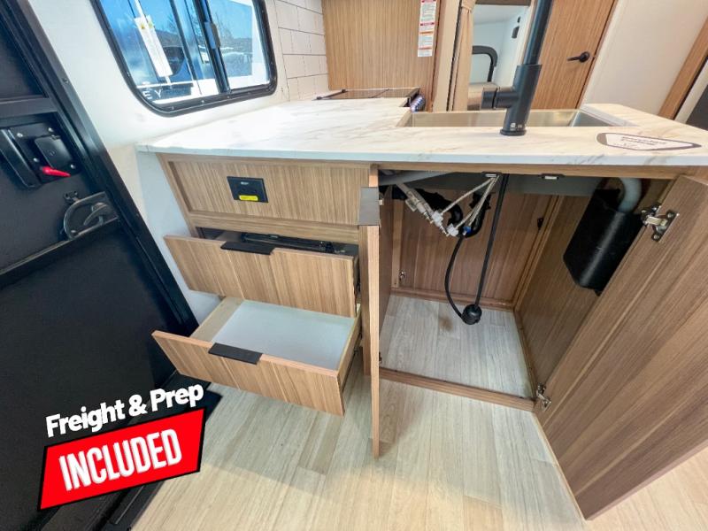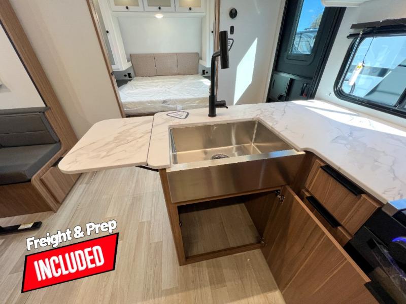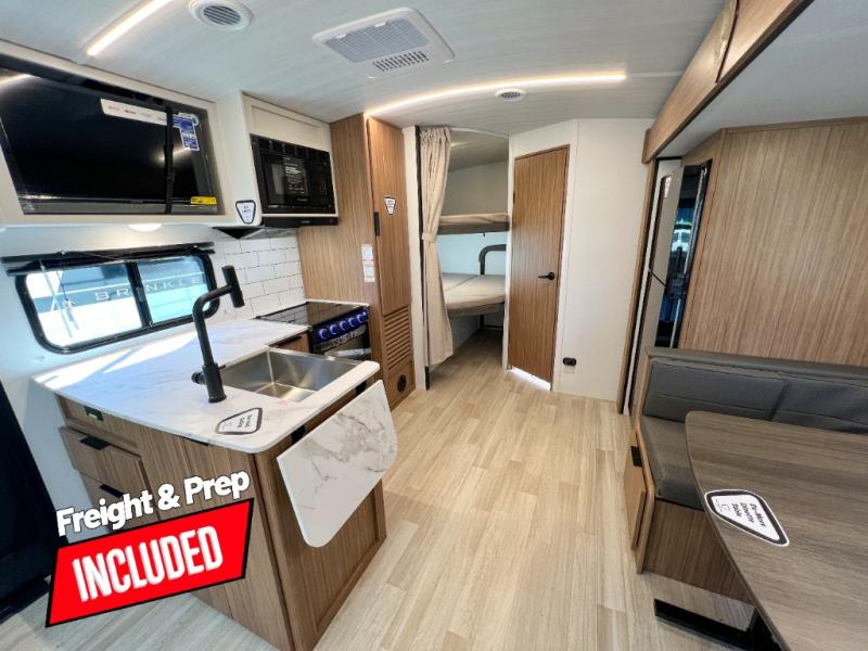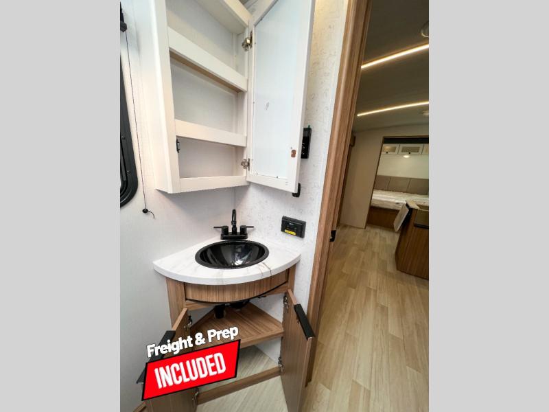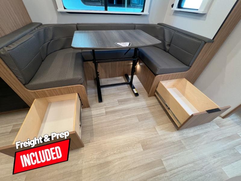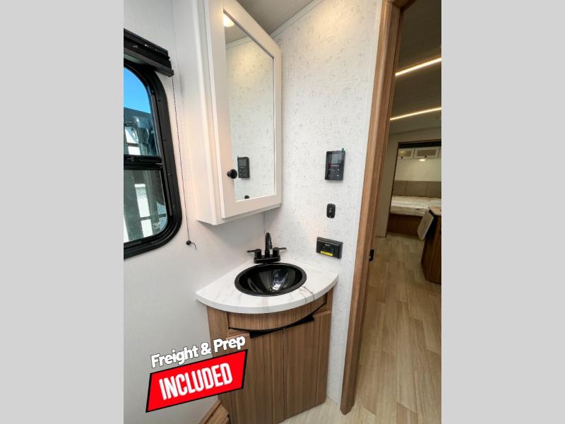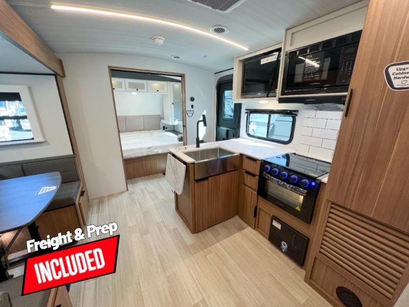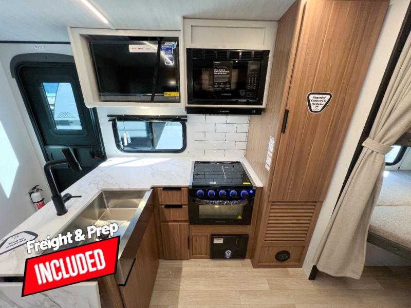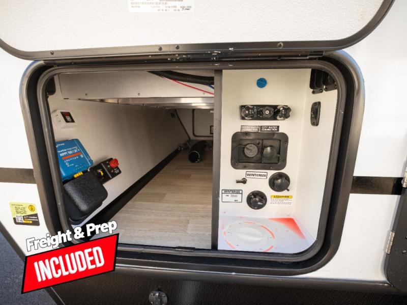 With any Keystone Passport Super Lite travel trailer you will enjoy lightweight towing and lots of interior comforts! The power tongue jack lets you hitch up at the drop of a hat, and the Dexter torsion axle rubber ride suspension will make towing easier than ever. You will appreciate having 4-point power stabilizer jacks for quick setup and an exterior convenience center to monitor tank levels. These trailers feature 5-sided aluminum construction, new premium aluminum wheels, a heated and enclosed underbelly, plus new composite solid entry steps. Inside, you'll enjoy seamless kitchen countertops, interior lights with a dimmer, a rainfall showerhead, and premium pull-down roller shades for added privacy.