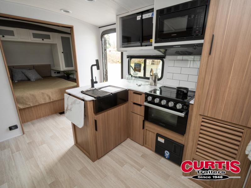 With any Keystone Passport Super Lite travel trailer you will enjoy lightweight towing and lots of interior comforts! The power tongue jack lets you hitch up at the drop of a hat, and the Dexter torsion axle rubber ride suspension will make towing easier than ever. You will appreciate having power stabilizer jacks for quick setup and an exterior convenience center to monitor tank levels. These trailers are constructed with a seamless, laminated and gel-coated filon exterior, 80% tinted safety glass windows, and a one-piece polypropylene underbelly. The interior will have you feeling right at home with residential durable Beauflor vinyl flooring, deluxe night shades, and seamless kitchen countertops to name a few comforts.