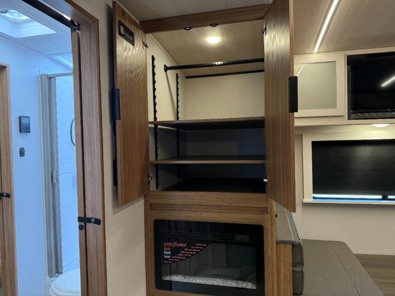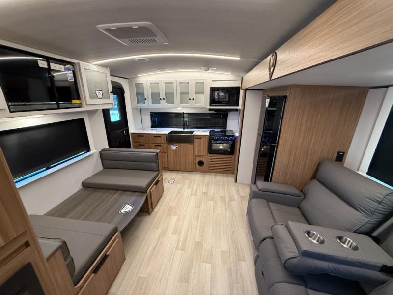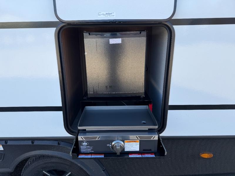 Are you looking to upgrade from a tent to a travel trailer? This dual axle unit may be the one! Since there are dual entry doors, you can enter in through the front master bedroom with a queen bed or the rear kitchen with ample counter space. Your crew can relax on the tri-fold sofa, play a game at the do-more dinette, or visit outdoors under the 19' awning. There is also an outdoor kitchen here for a sunrise breakfast! The walk-thru bath is easily accessible for everyone to use, and you'll find plenty of storage space throughout, including a large pantry, overhead compartments, and dual bedroom wardrobes and nightstands.