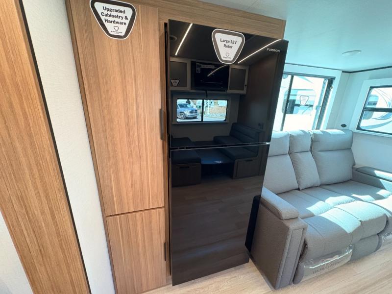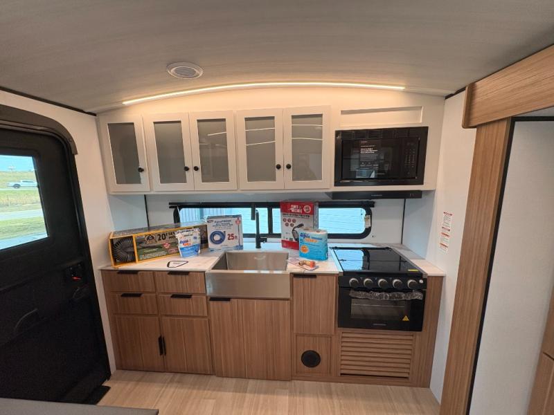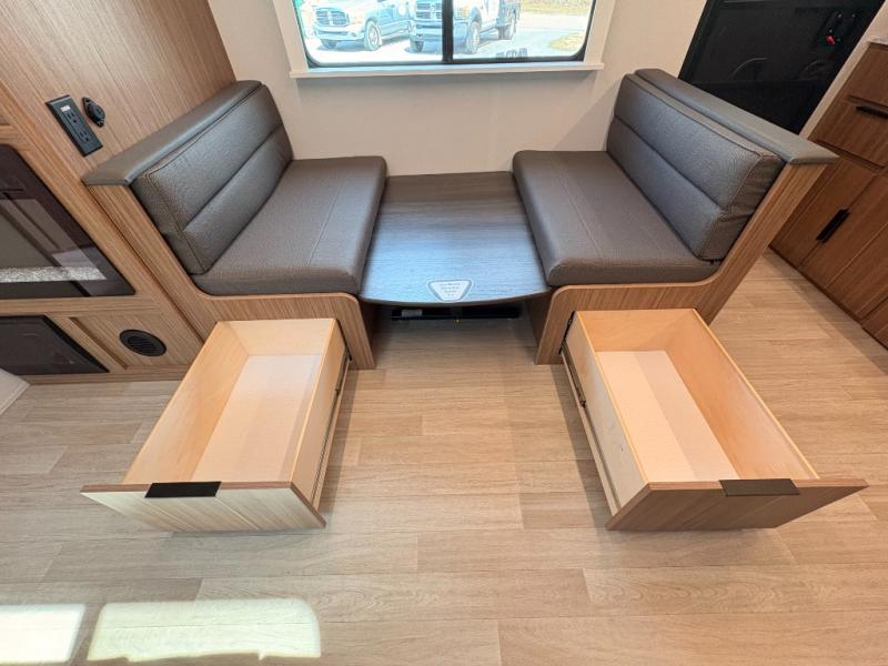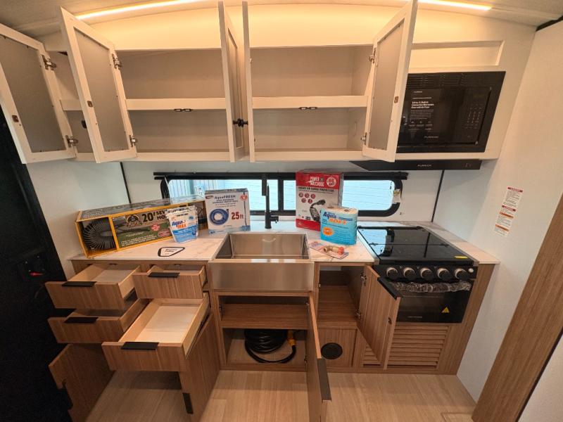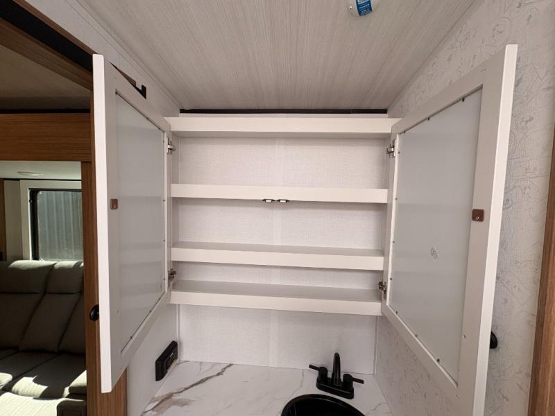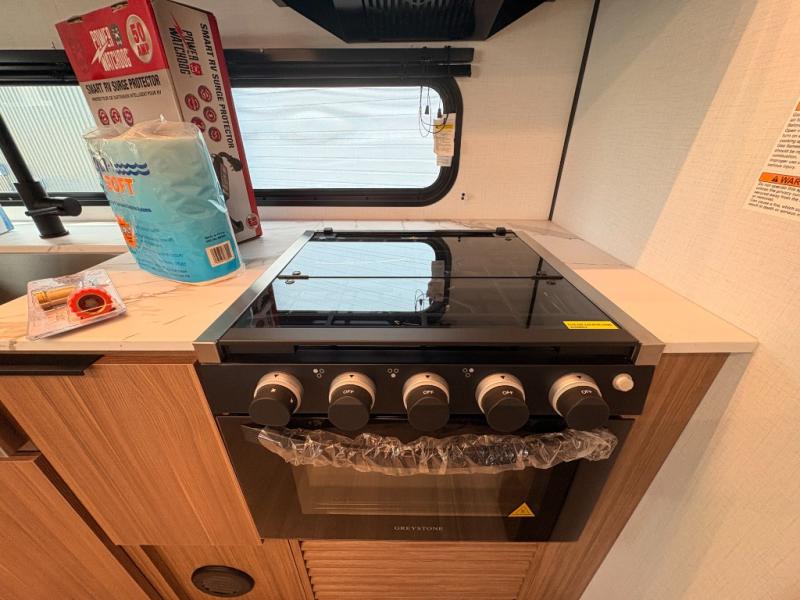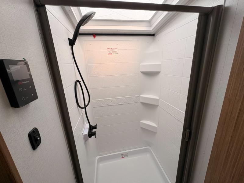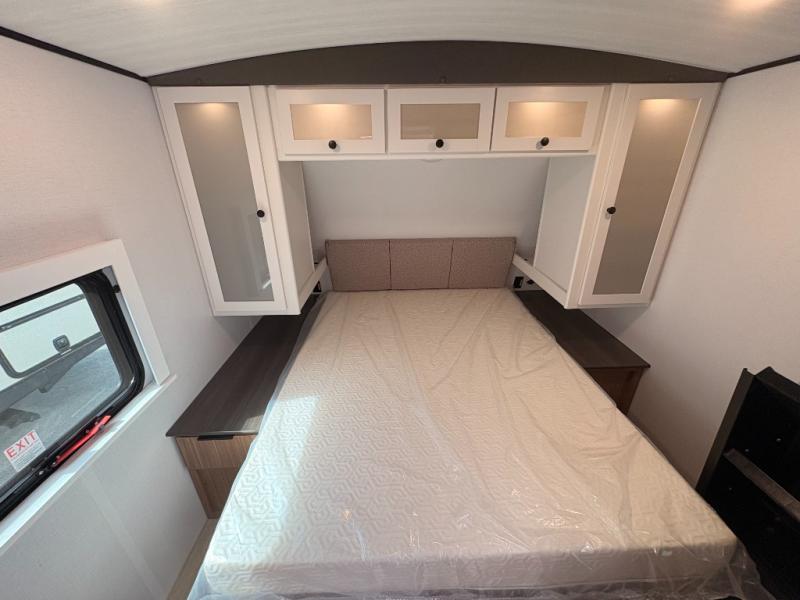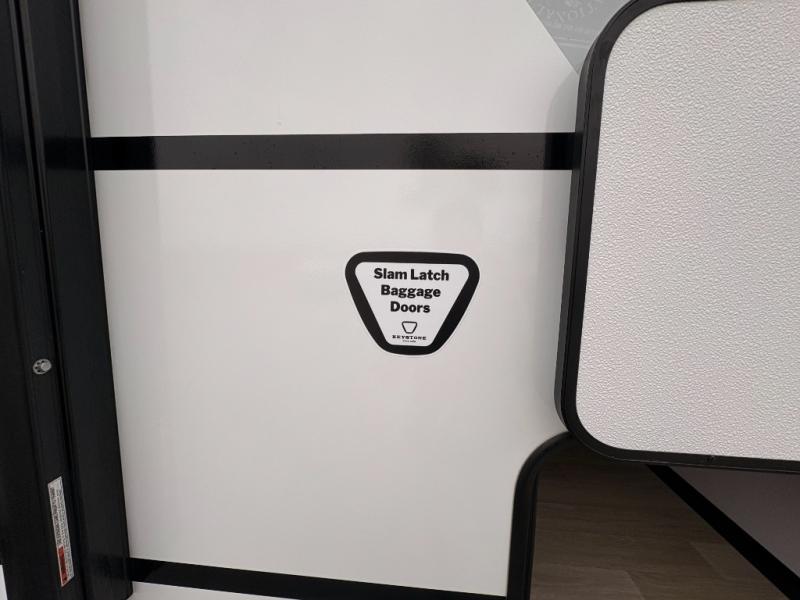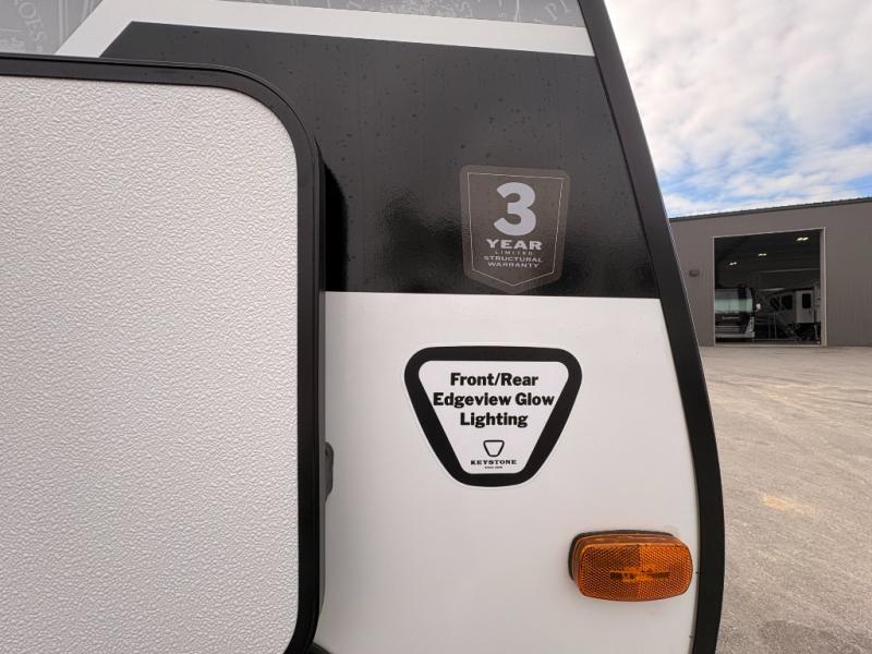 With any Keystone Passport Super Lite travel trailer you will enjoy lightweight towing and lots of interior comforts! The power tongue jack lets you hitch up at the drop of a hat, and the Dexter torsion axle rubber ride suspension will make towing easier than ever. You will appreciate having 4-point power stabilizer jacks for quick setup and an exterior convenience center to monitor tank levels. These trailers feature 5-sided aluminum construction, new premium aluminum wheels, a heated and enclosed underbelly, plus new composite solid entry steps. Inside, you'll enjoy seamless kitchen countertops, interior lights with a dimmer, a rainfall showerhead, and premium pull-down roller shades for added privacy.