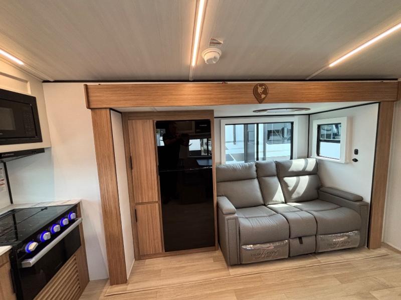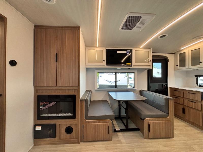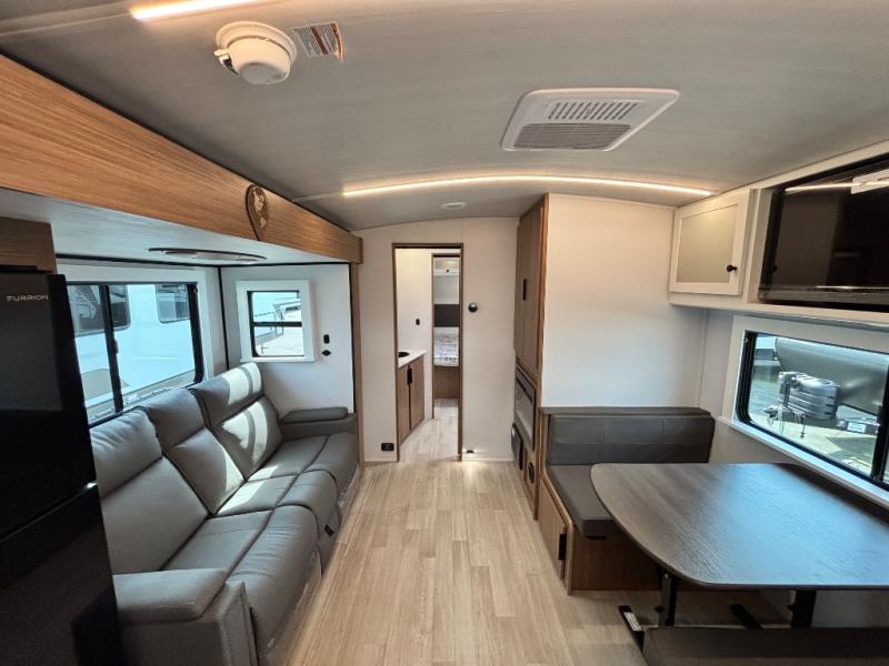 Are you looking to upgrade from a tent to a travel trailer? This dual axle unit may be the one! Since there are dual entry doors, you can enter in through the front master bedroom with a queen bed or the rear kitchen with ample counter space. Your crew can relax on the tri-fold sofa, play a game at the do-more dinette, or visit outdoors under the 19' awning. There is also an outdoor kitchen here for a sunrise breakfast! The walk-thru bath is easily accessible for everyone to use, and you'll find plenty of storage space throughout, including a large pantry, overhead compartments, and dual bedroom wardrobes.