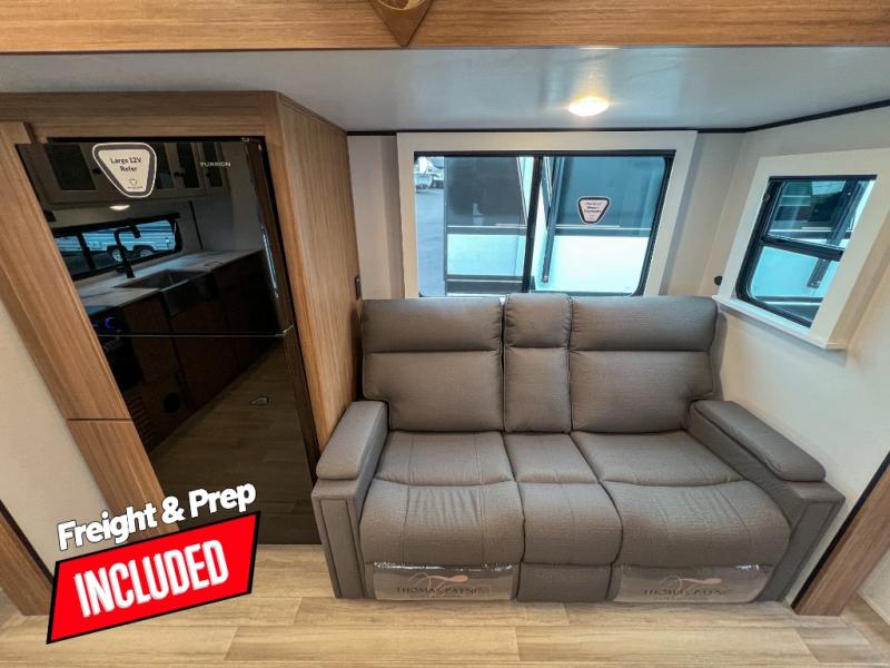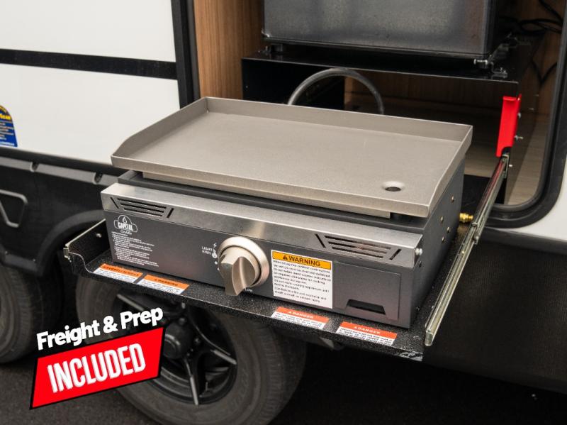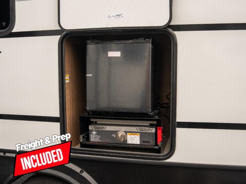 Are you looking to upgrade from a tent to a travel trailer? This dual axle unit may be the one! Since there are dual entry doors, you can enter in through the front master bedroom with a queen bed or the rear kitchen with ample counter space. Your crew can relax on the tri-fold sofa, play a game at the do-more dinette, or visit outdoors under the 19' awning. There is also an outdoor kitchen here for a sunrise breakfast! The walk-thru bath is easily accessible for everyone to use, and you'll find plenty of storage space throughout, including a large pantry, overhead compartments, and dual bedroom wardrobes.