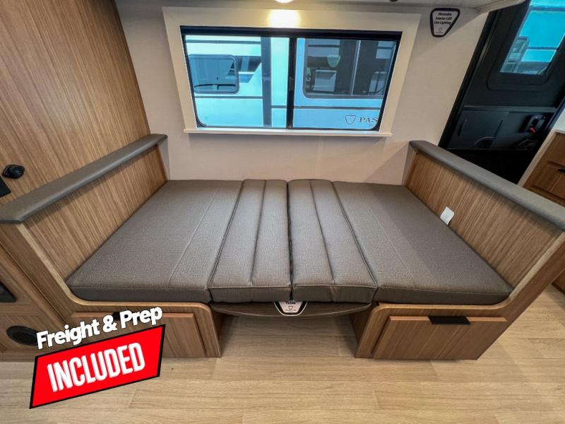 With any Keystone Passport Super Lite travel trailer you will enjoy lightweight towing and lots of interior comforts! The power tongue jack lets you hitch up at the drop of a hat, and the Dexter torsion axle rubber ride suspension will make towing easier than ever. You will appreciate having power stabilizer jacks for quick setup and an exterior convenience center to monitor tank levels. These trailers are constructed with a seamless, laminated and gel-coated filon exterior, 80% tinted safety glass windows, and a one-piece polypropylene underbelly. The interior will have you feeling right at home with residential durable Beauflor vinyl flooring, deluxe night shades, LED lighting throughout, and seamless kitchen countertops to name a few comforts.