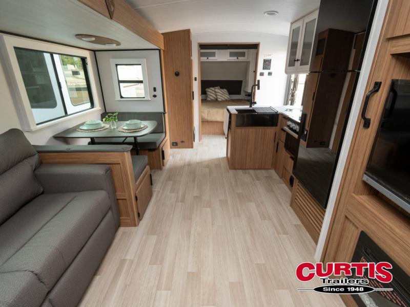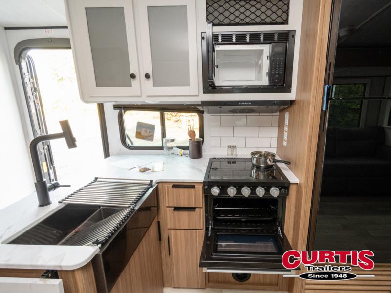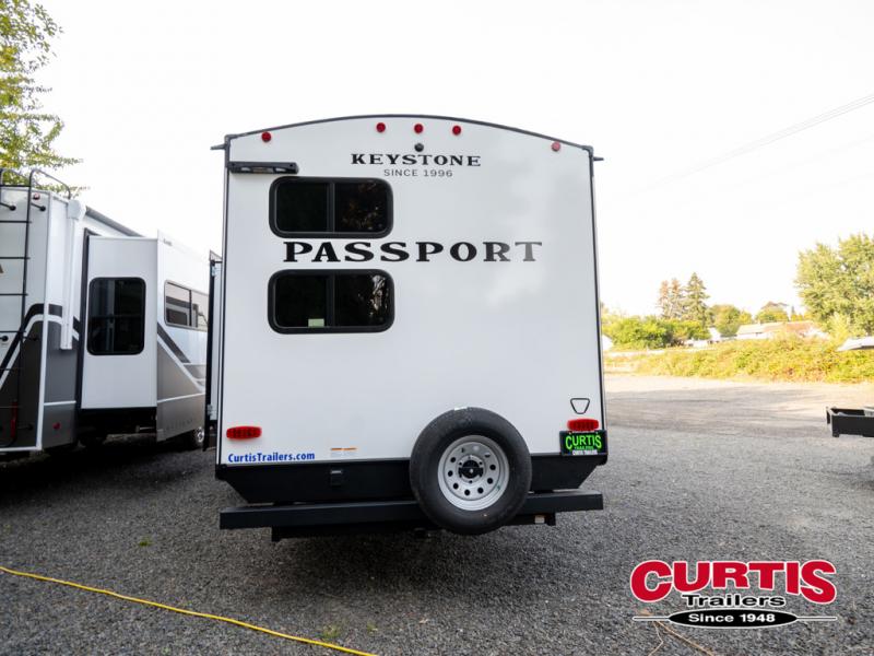 With any Keystone Passport Super Lite travel trailer you will enjoy lightweight towing and lots of interior comforts! The power tongue jack lets you hitch up at the drop of a hat, and the Dexter torsion axle rubber ride suspension will make towing easier than ever. You will appreciate having power stabilizer jacks for quick setup and an exterior convenience center to monitor tank levels. These trailers are constructed with a seamless, laminated and gel-coated filon exterior, 80% tinted safety glass windows, and a one-piece polypropylene underbelly. The interior will have you feeling right at home with residential durable Beauflor vinyl flooring, deluxe night shades, and seamless kitchen countertops to name a few comforts.