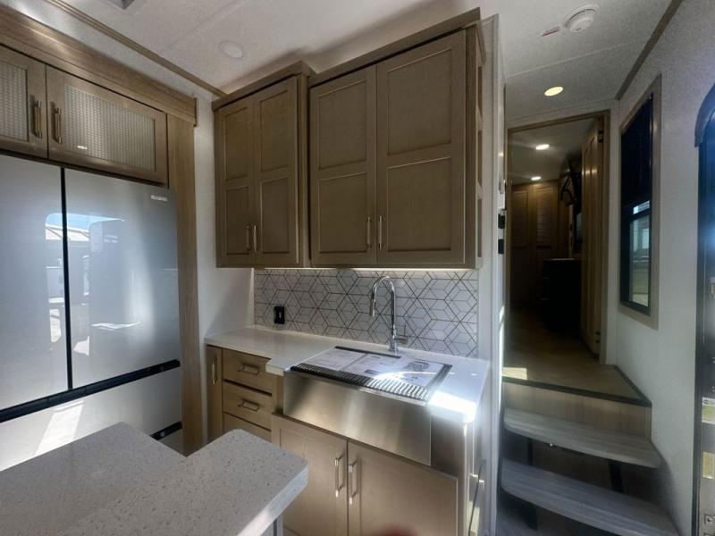 Experience a breath of fresh air with one of these Keystone RV Raptor fifth wheel toy haulers! Their rugged construction consists of a one-piece Alpha Super Flex TPO roof membrane, Dyna Span floor decking, and 5,000 lb. frame-welded tie- downs to keep your toys in place as you travel. Some unexpected conveniences you will appreciate include an Omni-Chill A/C system to keep you cool on those hot summer days, a Furrion backup camera, MaxTurn™ technology with a Helux™ pin box, and a Generation 3 iN-Command smart automation system with Global Connect to make life easier. There is also designer style vinyl flooring throughout, along with new ceiling treatment with LED accent lighting, beach wood and white cabinetry, and many more interior comforts!