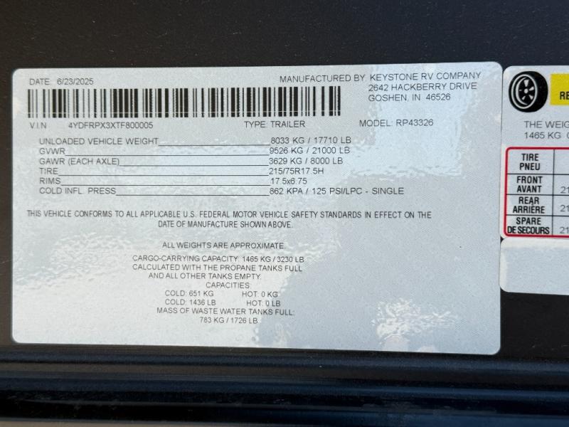| VIN | 4YDFRPX3XTF800005 |