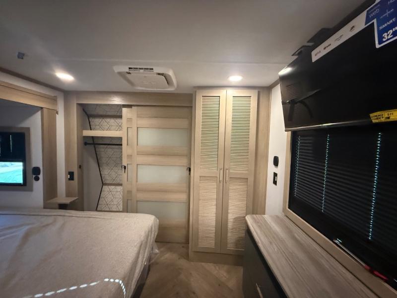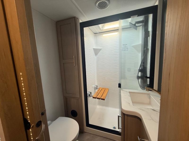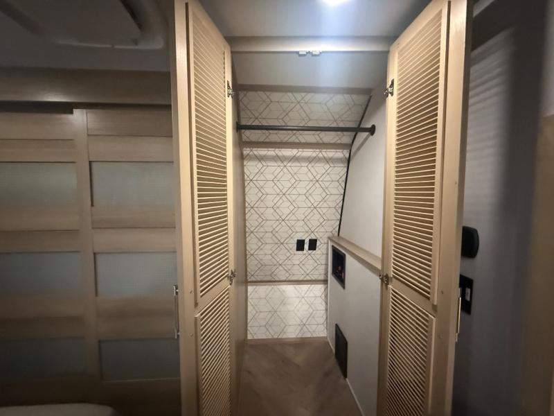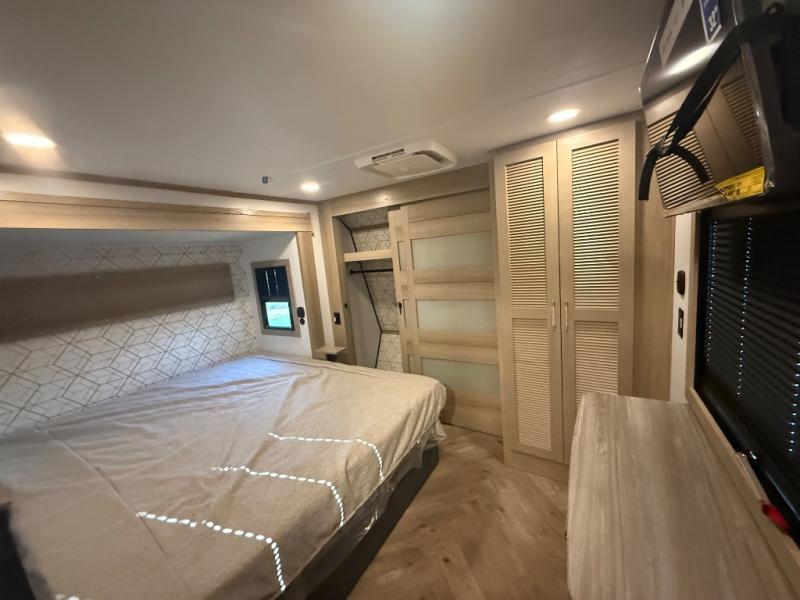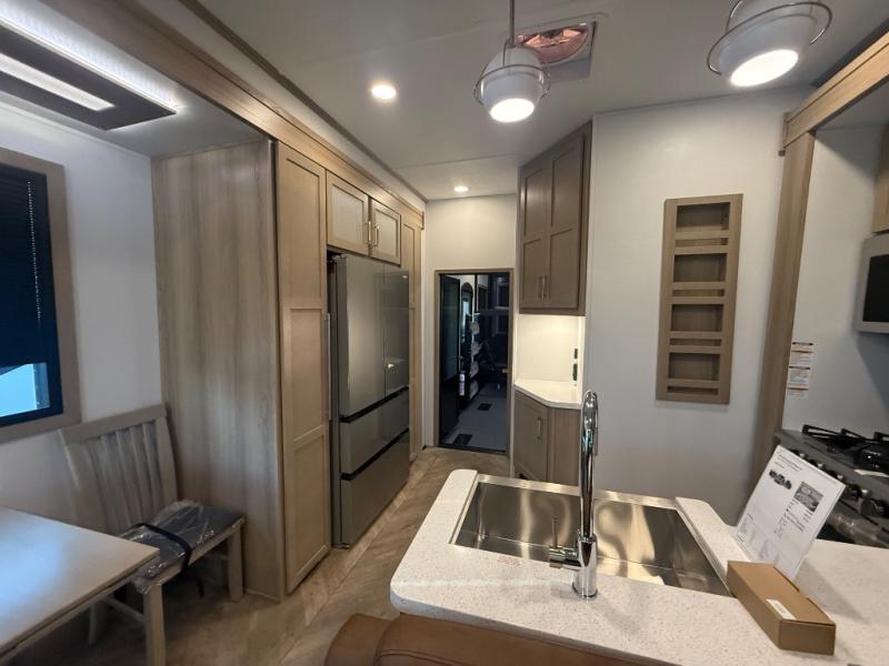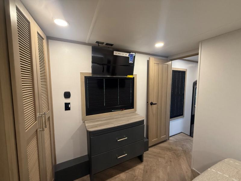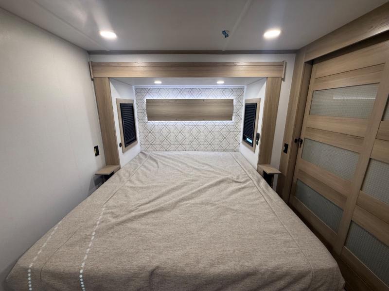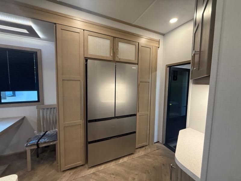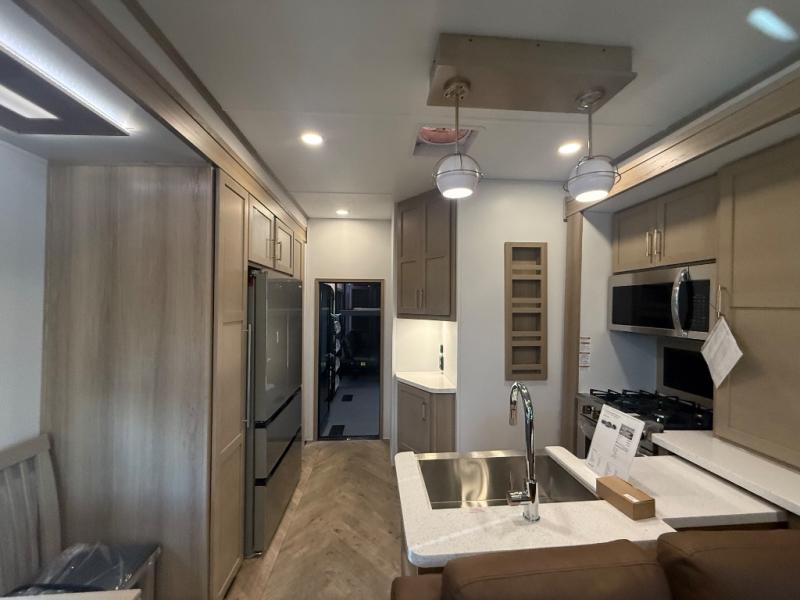There's room for everyone in this toy hauler! The front private bedroom has a king bed slide for more interior space, a Smart LED TV, a front large wardrobe, plus washer and dryer prep. With two full bathrooms, it will be easy for everyone to get the mud rinsed out of their hair after a fun time on the trails. Start each morning off with a belly full of eggs cooked on the four-burner range and cinnamon rolls baked in the 24" stainless steel oven. Grab a cold cup of orange juice from the 20-cu. ft. 12-volt refrigerator and enjoy it along with the eggs at the dinette table or in the 13' 6" garage on one of the dual opposing sofas with table in between. The L-shaped sofa is conveniently across from the entertainment center with a 50" Smart LED TV and fireplace. As you head into the 13' 6" garage area, you will notice a loft with twin bed, an electric bed above the opposing sofas, Adjust-A-Track frame welded tie-downs, a full bathroom, and one of the dual entry doors to the unit!