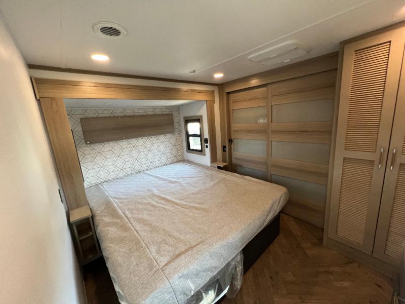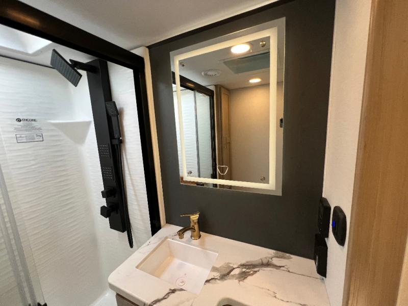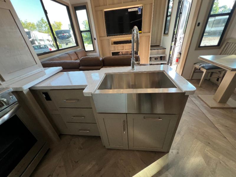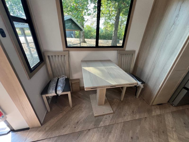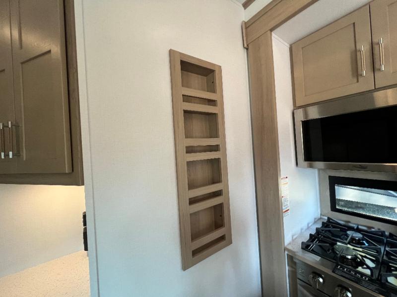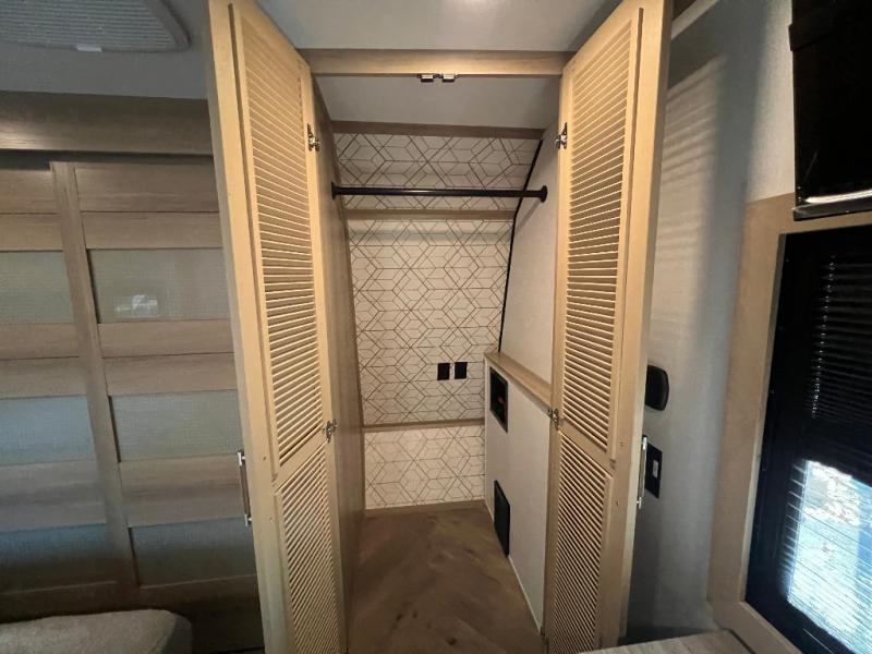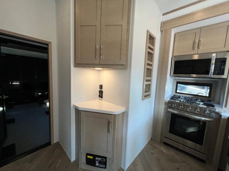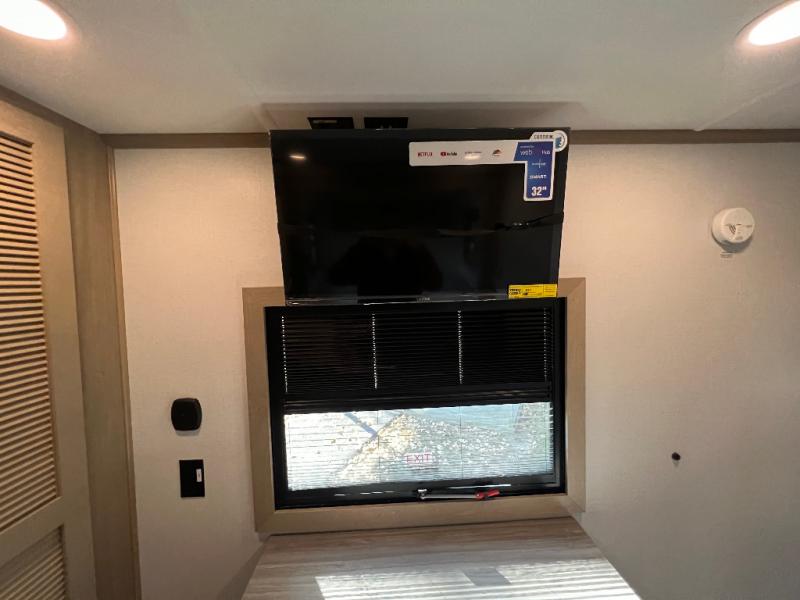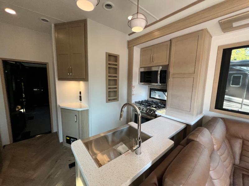 There's room for everyone in this toy hauler! The front private bedroom has a king bed slide for more interior space, a Smart LED TV, a front large wardrobe, plus washer and dryer prep. With two full bathrooms, it will be easy for everyone to get the mud rinsed out of their hair after a fun time on the trails. Start each morning off with a belly full of eggs cooked on the four-burner range and cinnamon rolls baked in the 24" stainless steel oven. Grab a cold cup of orange juice from the 20-cu. ft. 12-volt refrigerator and enjoy it along with the eggs at the dinette table or in the 13' 6" garage on one of the dual opposing sofas with table in between. The L-shaped sofa is conveniently across from the entertainment center with a 50" Smart LED TV and fireplace. As you head into the 13' 6" garage area, you will notice a loft with twin bed, an electric bed above the opposing sofas, Adjust-A-Track frame welded tie-downs, a full bathroom, and one of the dual entry doors to the unit!