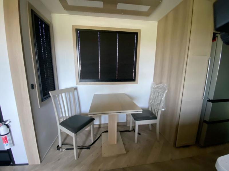 Experience a breath of fresh air with one of these Keystone RV Raptor fifth wheel toy haulers! Their rugged construction consists of a one-piece Alpha Super Flex TPO roof membrane, Dyna Span floor decking, and 5,000 lb. frame-welded tie- downs to keep your toys in place as you travel. Some unexpected conveniences you will appreciate include an Omni-Chill A/C system to keep you cool on those hot summer days, a Furrion backup camera, MaxTurn™ technology with a Helux™ pin box, and a Generation 3 iN-Command smart automation system with Global Connect to make life easier. There is also designer style vinyl flooring throughout, along with new ceiling treatment with LED accent lighting, beach wood and white cabinetry, and many more interior comforts!