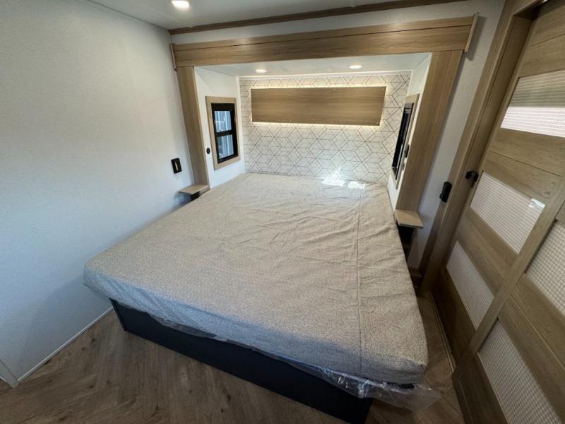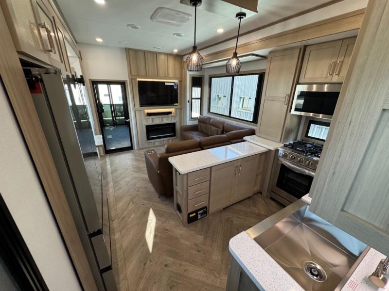 Experience a breath of fresh air with one of these Keystone RV Raptor fifth wheel toy haulers! Their rugged construction consists of a one-piece Alpha Super Flex TPO roof membrane, Dyna Span floor decking, and 5,000 lb. frame-welded tie- downs to keep your toys in place as you travel. Some unexpected conveniences you will appreciate include an Omni-Chill A/C system to keep you cool on those hot summer days, a Furrion backup camera, MaxTurn™ technology with a Helux™ pin box, and a Generation 3 iN-Command smart automation system with Global Connect to make life easier. There is also designer style vinyl flooring throughout, along with hardwood ceiling treatment with LED accent lighting, beach wood and white cabinetry, and many more interior comforts!