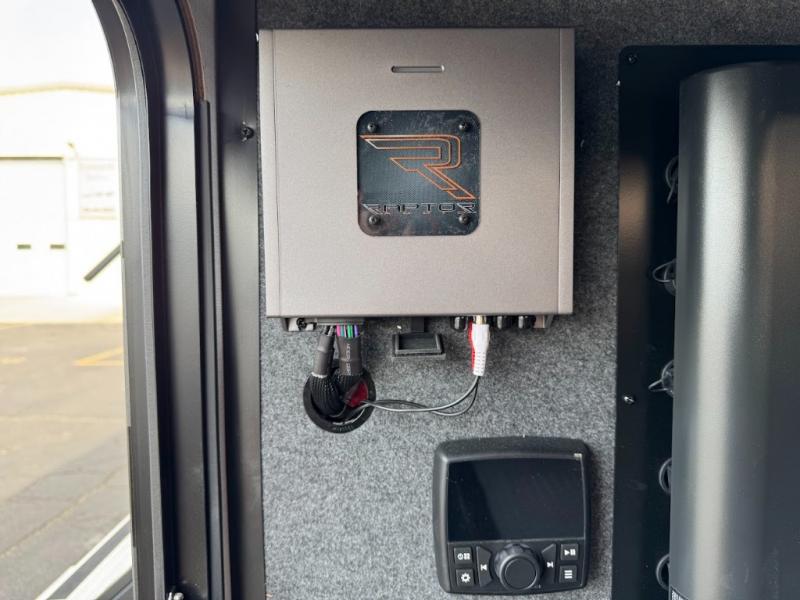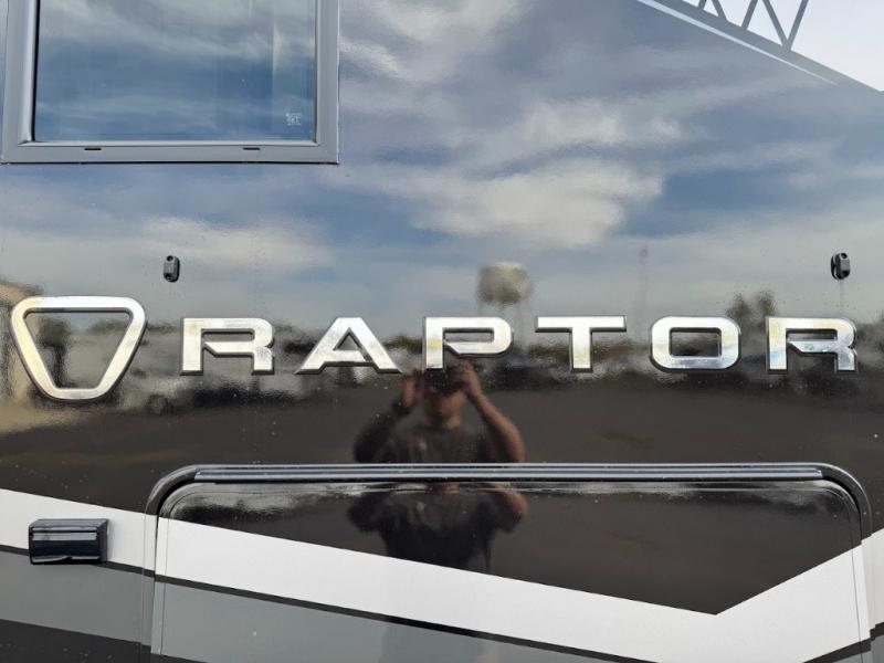 Experience a breath of fresh air with one of these Keystone RV Raptor fifth wheel toy haulers! Their rugged construction consists of a one-piece Alpha Super Flex TPO roof membrane, Dyna Span floor decking, and 5,000 lb. frame-welded tie- downs to keep your toys in place as you travel. Some unexpected conveniences you will appreciate include an Omni-Chill A/C system to keep you cool on those hot summer days, a Furrion backup camera, MaxTurn™ technology with a Helux™ pin box, and a Generation 3 iN-Command smart automation system with Global Connect to make life easier. There is also designer style vinyl flooring throughout, along with new ceiling treatment with LED accent lighting, beach wood and white cabinetry, and many more interior comforts!