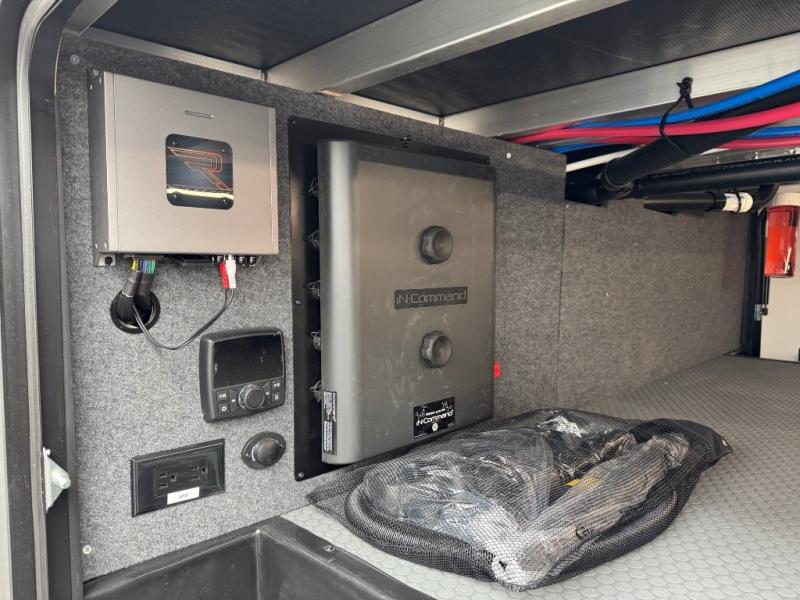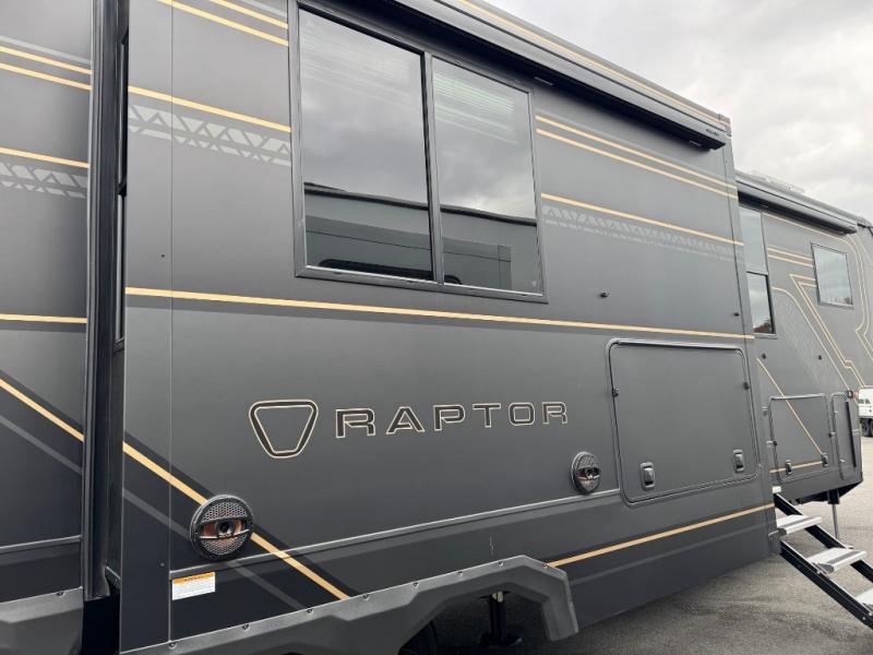 Experience a breath of fresh air with one of these Keystone RV Raptor fifth wheel toy haulers! Their rugged construction consists of a one-piece Alpha Super Flex TPO roof membrane, Dyna Span floor decking, and 5,000 lb. frame-welded tie- downs to keep your toys in place as you travel. Some unexpected conveniences you will appreciate include an Omni-Chill A/C system to keep you cool on those hot summer days, a Furrion backup camera, MaxTurn™ technology with a Helux™ pin box, and a Generation 3 iN-Command smart automation system with Global Connect to make life easier. There is also designer style vinyl flooring throughout, along with new ceiling treatment with LED accent lighting, beach wood and white cabinetry, and many more interior comforts!