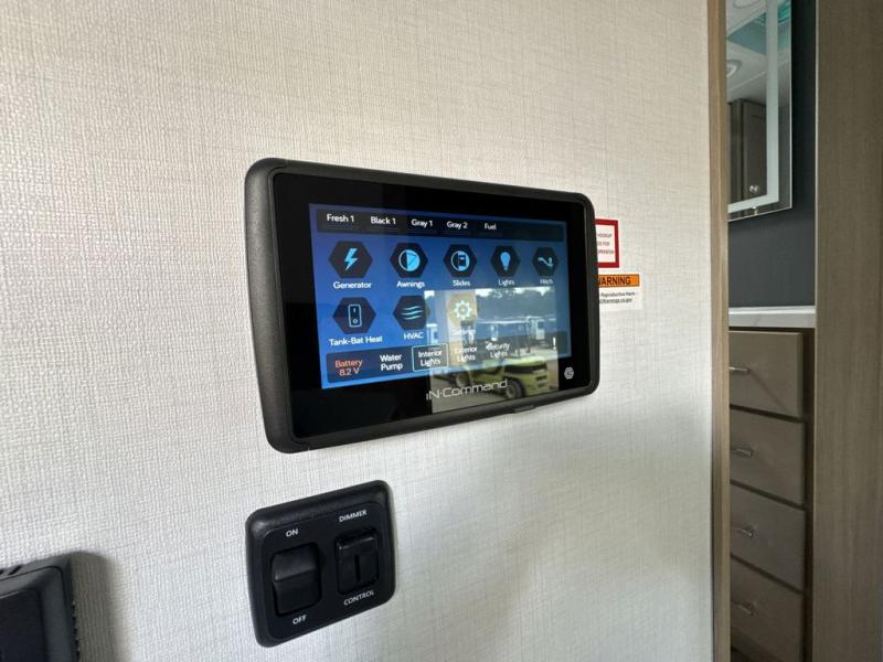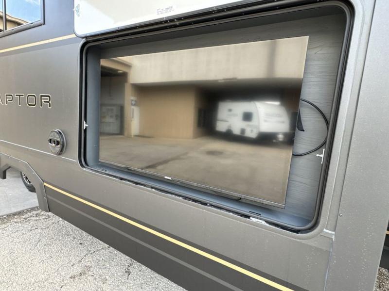 Experience a breath of fresh air with one of these Keystone RV Raptor fifth wheel toy haulers! Their rugged construction consists of a one-piece Alpha Super Flex TPO roof membrane, Dyna Span floor decking, and 5,000 lb. frame-welded tie- downs to keep your toys in place as you travel. Some unexpected conveniences you will appreciate include an Omni-Chill A/C system to keep you cool on those hot summer days, a Furrion backup camera, MaxTurn™ technology with a Helux™ pin box, and a Generation 3 iN-Command smart automation system with Global Connect to make life easier. There is also designer style vinyl flooring throughout, along with new ceiling treatment with LED accent lighting, beach wood and white cabinetry, and many more interior comforts!
