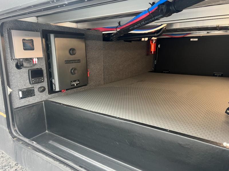Experience a breath of fresh air with one of these Keystone RV Raptor fifth wheel toy haulers! Their rugged construction consists of a one-piece Alpha Super Flex TPO roof membrane, Dyna Span floor decking, and 5,000 lb. frame-welded tie- downs to keep your toys in place as you travel. Some unexpected conveniences you will appreciate include an Omni-Chill A/C system to keep you cool on those hot summer days, a Furrion backup camera, MaxTurn™ technology with a Helux™ pin box, and a Generation 3 iN-Command smart automation system with Global Connect to make life easier. There is also designer style vinyl flooring throughout, along with new ceiling treatment with LED accent lighting, beach wood and white cabinetry, and many more interior comforts!