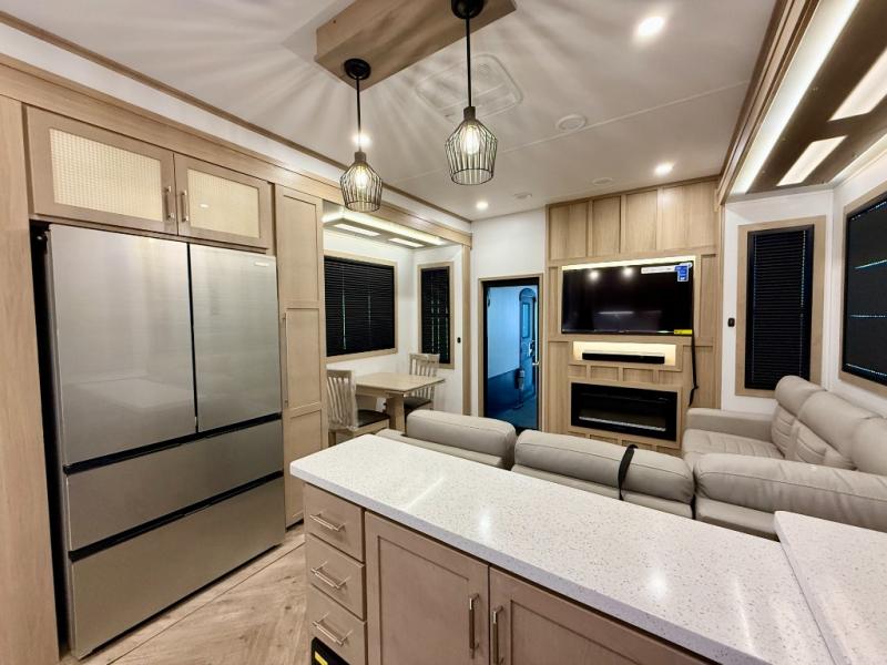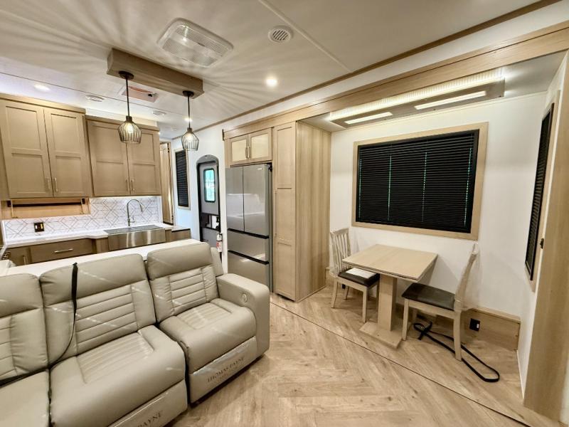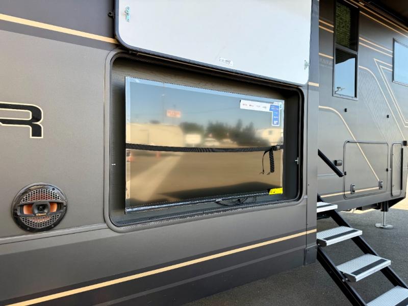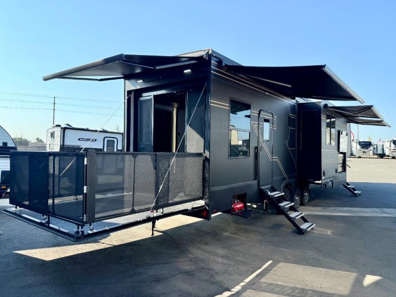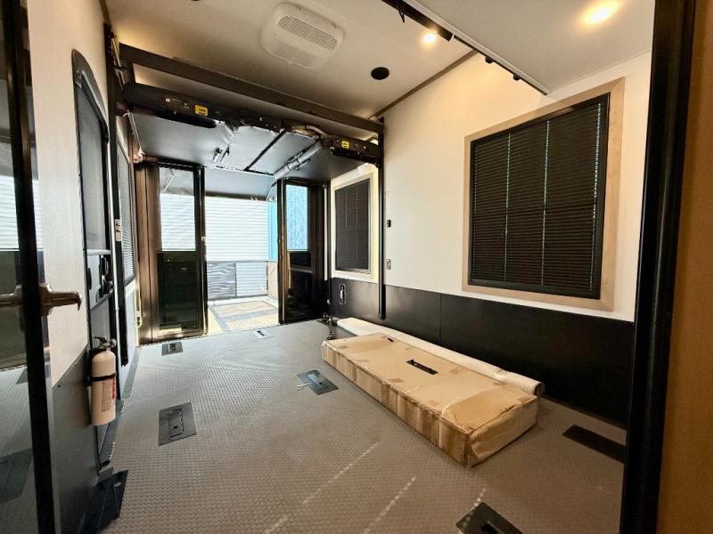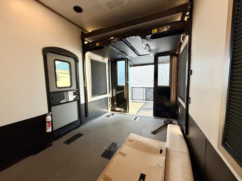 NEW Raptor 441 in Matte Black Full Body Paint (yes!)! Only Toyhauler in the industry with Power Ramp Door (New)! 5.5kW Generator, 2-100ah DFE Lithium, Solar Flex Discover, Hydraulic Leveling, FULLY LOADED!!