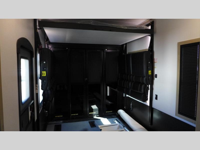 Experience a breath of fresh air with one of these Keystone RV Raptor fifth wheel toy haulers! Their rugged construction consists of a one-piece Alpha Super Flex TPO roof membrane, Dyna Span floor decking, and 5,000 lb. frame-welded tie- downs to keep your toys in place as you travel. Some unexpected conveniences you will appreciate include an Omni-Chill A/C system to keep you cool on those hot summer days, a Furrion backup camera, MaxTurn™ technology with a Helux™ pin box, and a Generation 3 iN-Command smart automation system with Global Connect to make life easier. There is also designer style vinyl flooring throughout, along with new ceiling treatment with LED accent lighting, beach wood and white cabinetry, and many more interior comforts!