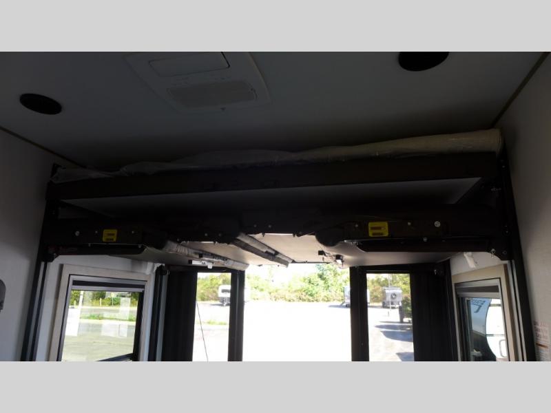 Experience a breath of fresh air with one of these Keystone RV Raptor fifth wheel toy haulers! Their rugged construction consists of a one-piece Alpha Super Flex TPO roof membrane, Dyna Span floor decking, and 5,000 lb. frame-welded tie- downs to keep your toys in place as you travel. Some unexpected conveniences you will appreciate include an Omni-Chill A/C system to keep you cool on those hot summer days, a Furrion backup camera, MaxTurn™ technology with a Helux™ pin box, and a Generation 3 iN-Command smart automation system with Global Connect to make life easier. There is also designer style vinyl flooring throughout, along with new ceiling treatment with LED accent lighting, beach wood and white cabinetry, and many more interior comforts!