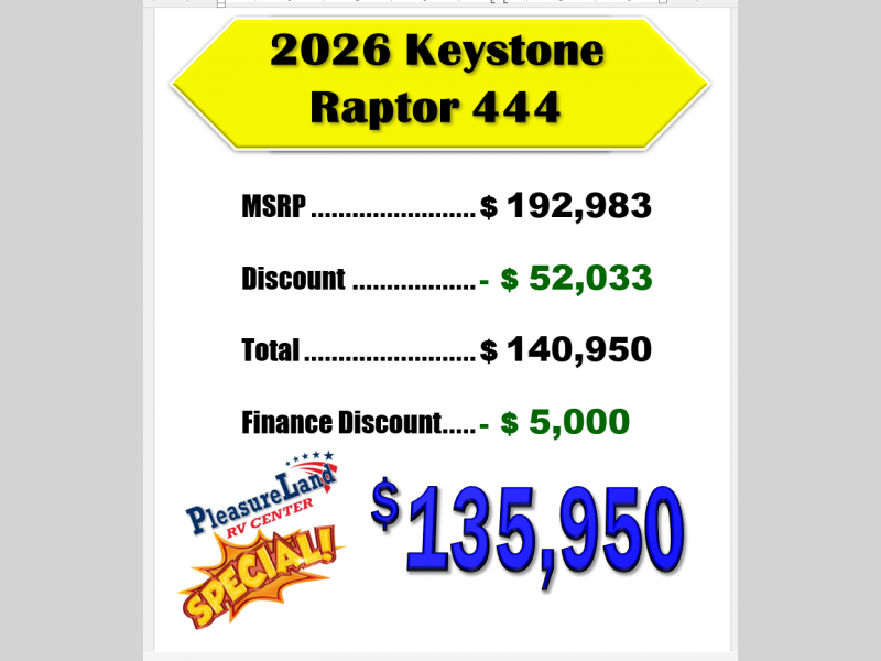 New 2026 Keystone RV Raptor 444 Toy Hauler Fifth Wheel