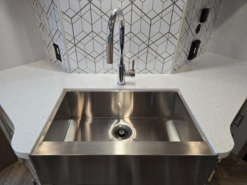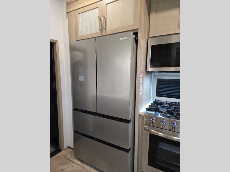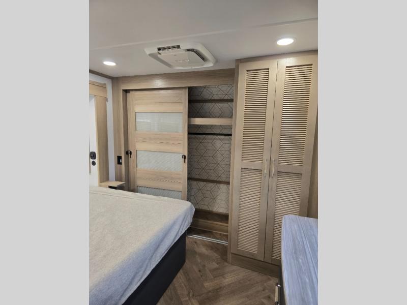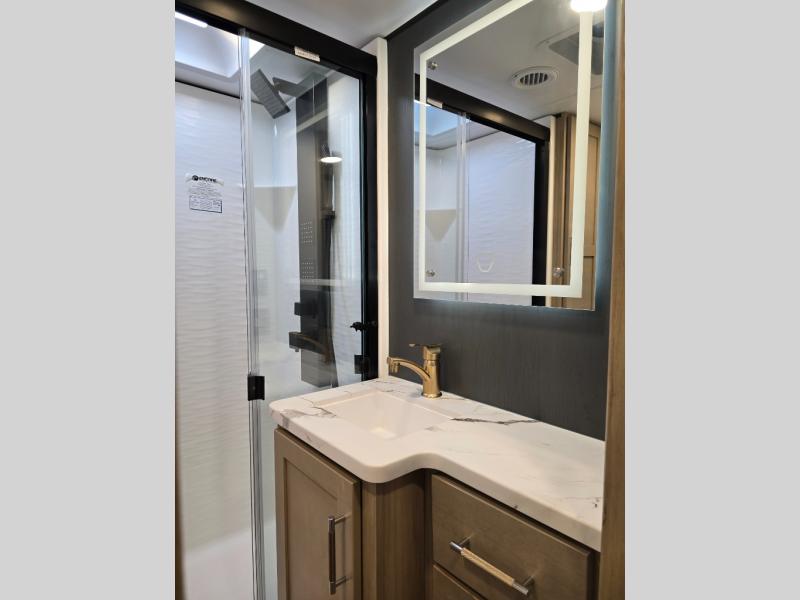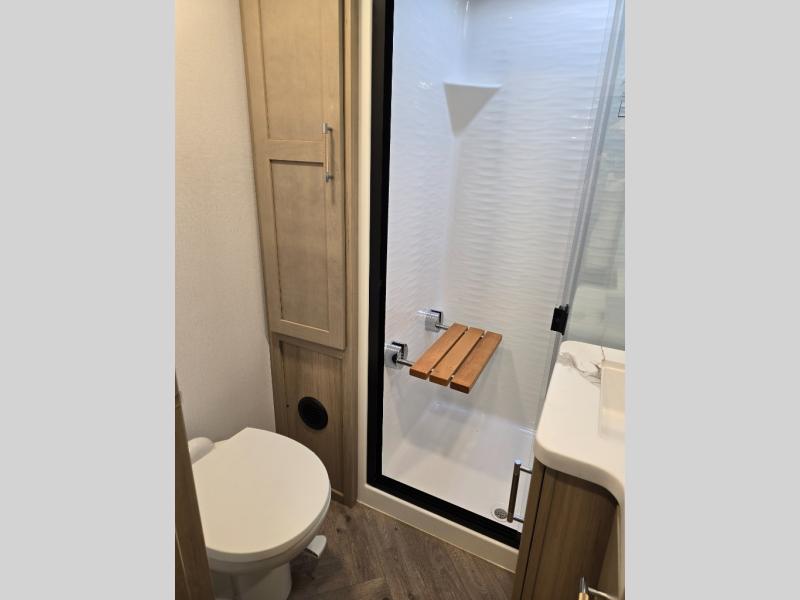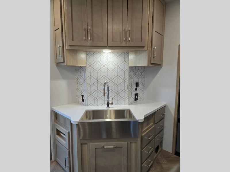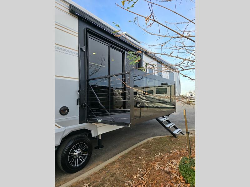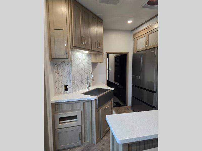 Interior comforts that don’t compromise: Designer vinyl flooring, solid-surface countertops, residential-style cabinetry, and premium furnishings like power-recline furniture, plus full kitchens and modern entertainment systems — blending luxury with rugged practicality.