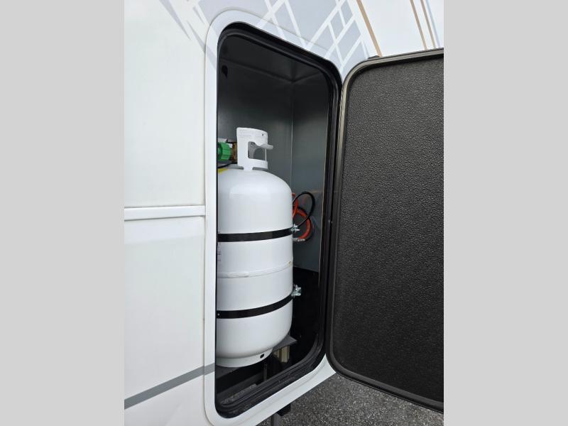 Garage & cargo-ready: Built-in 5,000 lb tie-down frame, Dyna Span® one-piece flooring for durability, and plenty of room for toys, tools, or outdoor gear — making it a true “go anywhere, bring anything” home on wheels.