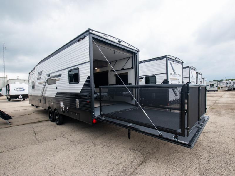 Keystone Raptor Carbon Series toy hauler aluminum travel trailer 29WFO highlights: