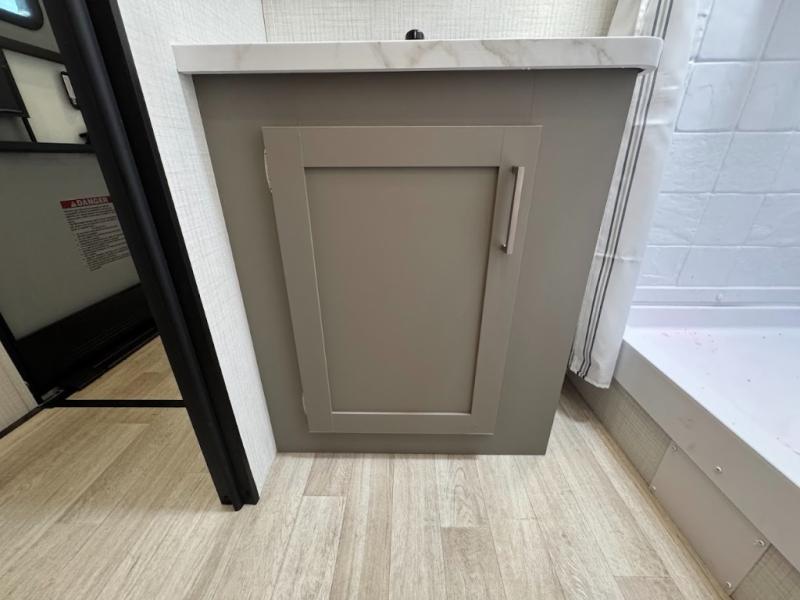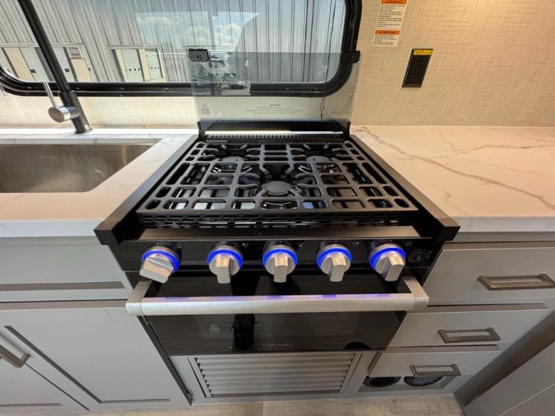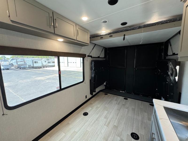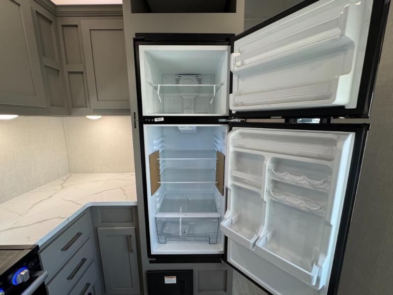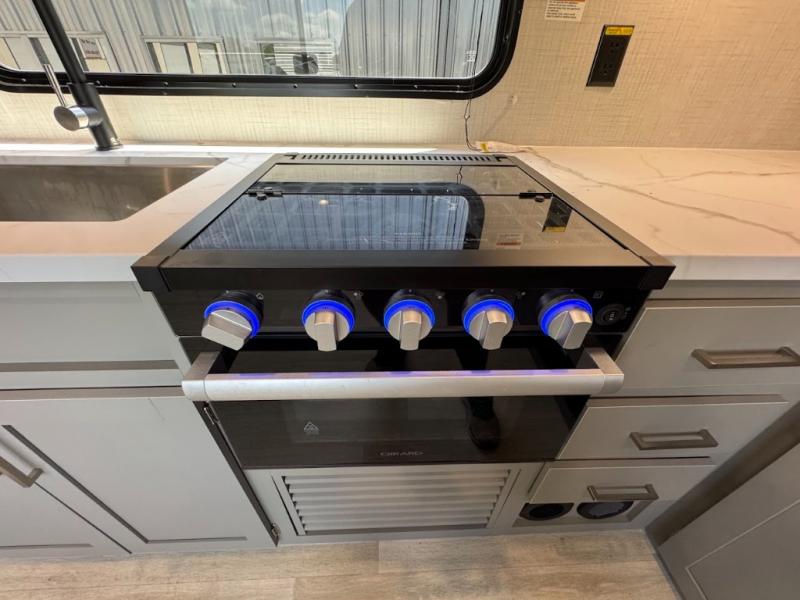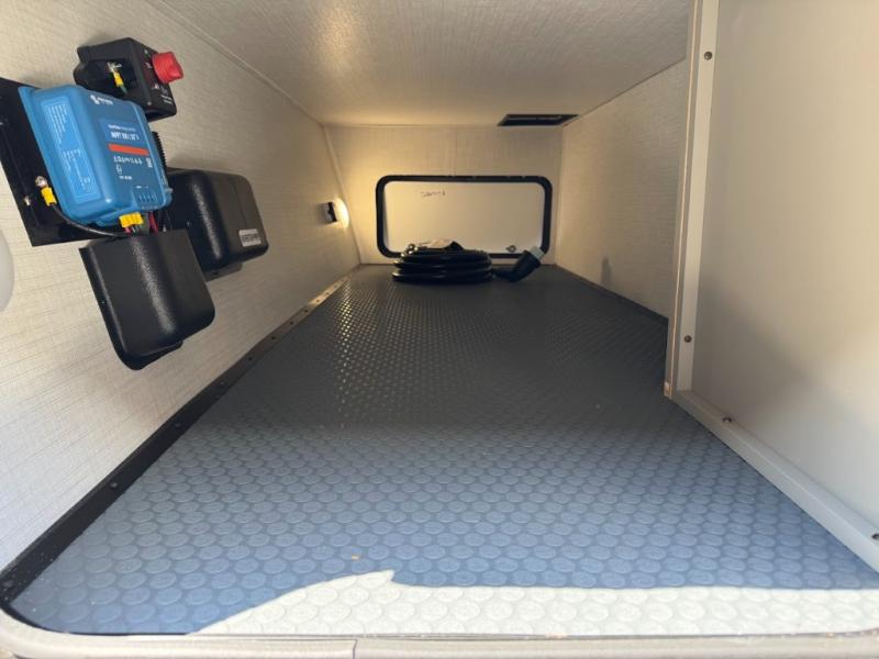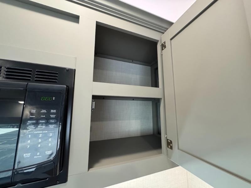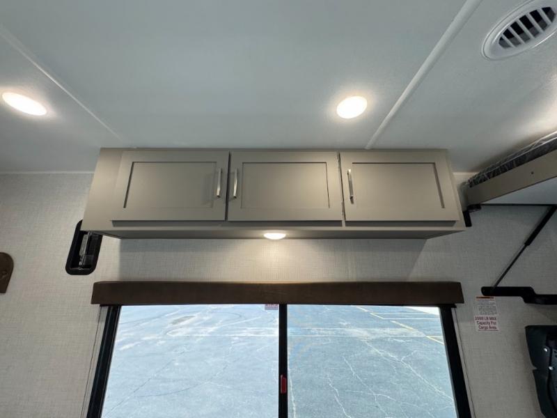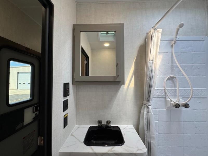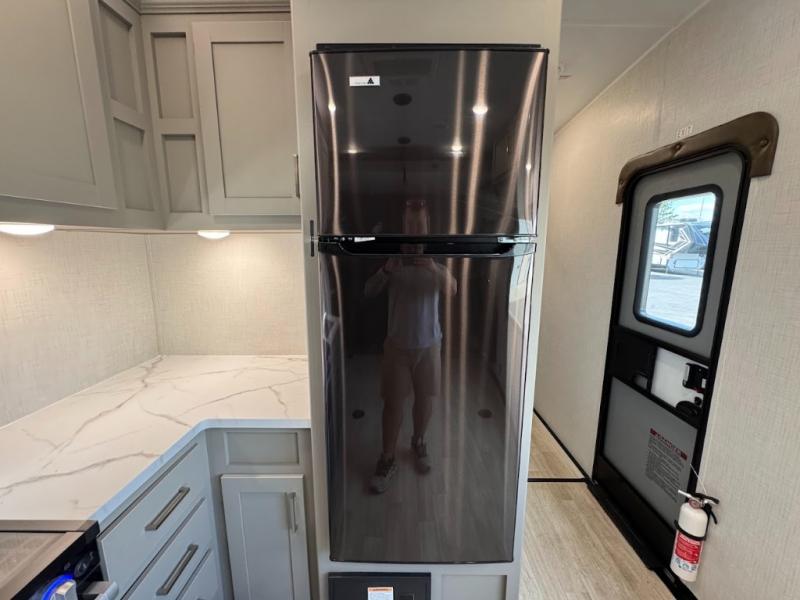 Load up your favorite off-road riding toys and head to your favorite trails, dunes, or competition rally with family and friends. This unit sleeps six with the RV queen bed in front and the dual roll over sofas and bonus bunk in back. The 13' garage with 5K inter-lock system tie downs will get all of your cargo safely to your destination. Once in camp, the rear ramp door will help you easily unload and then set up the sofas with table in between. A full kitchen allows you to refuel your bodies easily by providing a three burner range and 17" black oven, a 10.7 cu. ft. 12V refrigerator for your perishables, and a residential microwave oven to heat up leftovers. The full bath will allow everyone to easily clean up after a full day of fun, and you will enjoy the private front bedroom with an RV queen bed and a full closet for all of your things. On the outside, an 18' power awning provides added living space, or you might like to add the optional patio package for a raised extension of your unit giving you an outdoor space to enjoy.