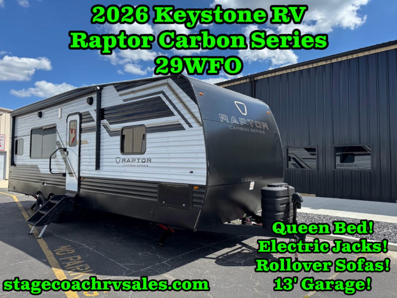 New 2026 Keystone RV Raptor Carbon Series 29WFO Toy Hauler Travel Trailer