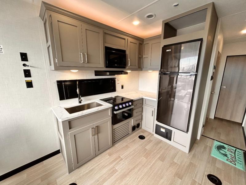 13 Ft Garage / 30 Gallon Fuel Station / Rear Bunk Bed / Patio System / All Power Jacks / 220 Wat Solar / 2 AC !!
