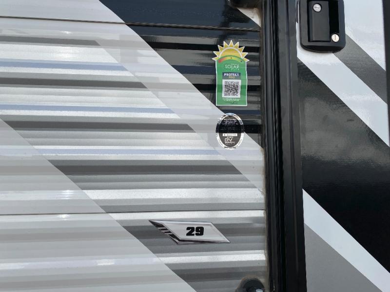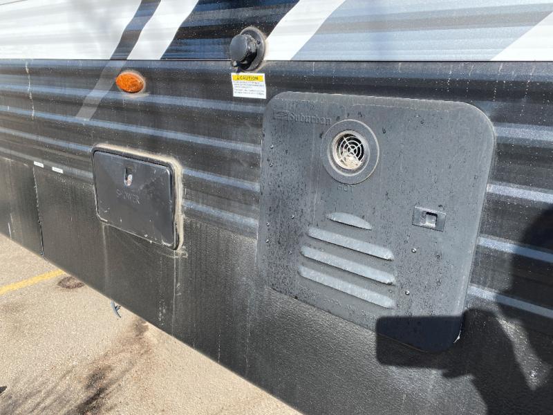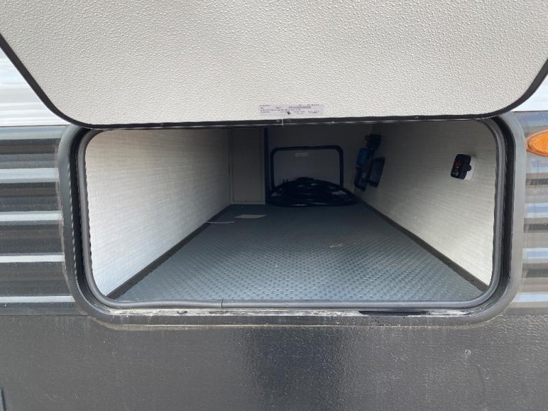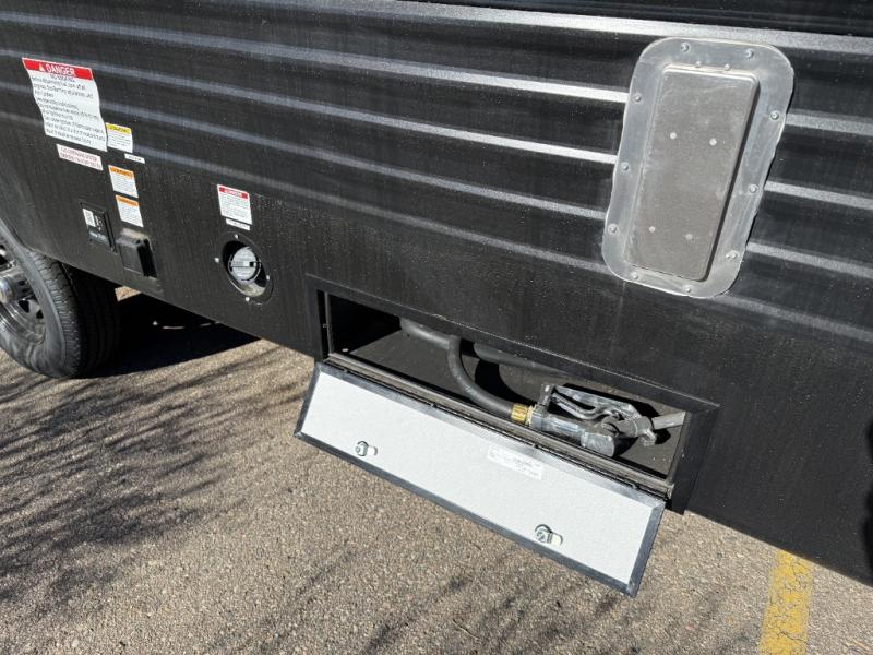 Each Raptor Carbon Series toy hauler travel trailer is built with a 10" I-beam frame, and aluminum sidewalls, a SuperFlex roof membrane, and new sleek exterior graphics! There is also a lighted pass-through storage outside, along with a hot/cold shower, MORryde StepAbove entry steps, and an exterior convenience center for all your hookups. Head inside to find refreshed interior decor, pull-down window shades, soft-close hardwood cabinetry with hidden hinges, and pressed countertops to name a few comforts!