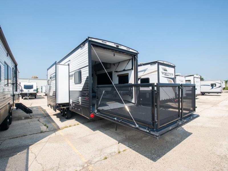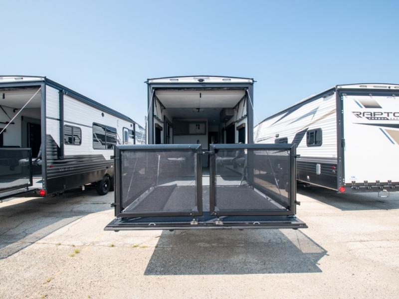 Keystone Raptor Carbon Series toy hauler aluminum travel trailer 30WFO highlights:
