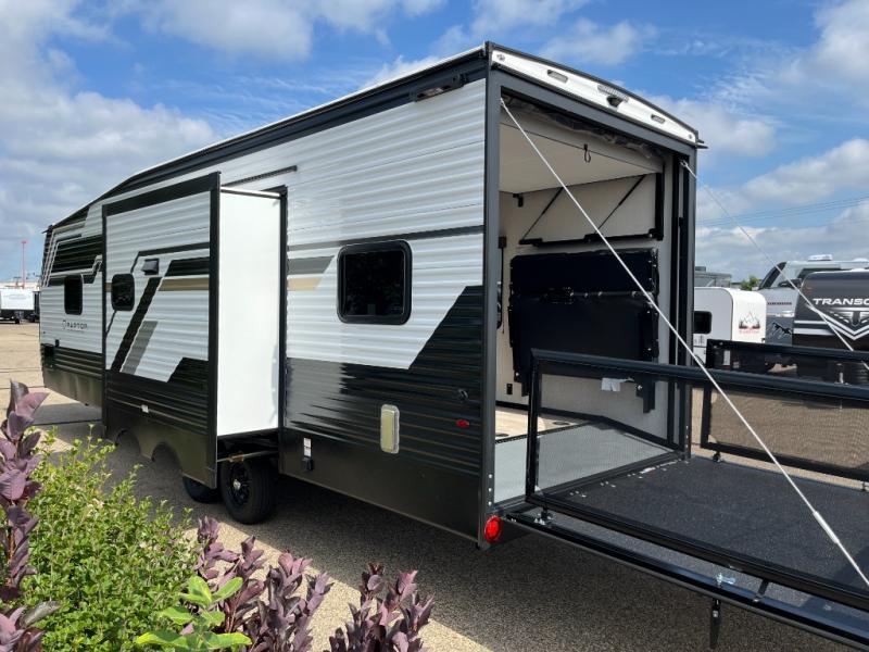 Each Raptor Carbon Series toy hauler travel trailer is built with a 10" I-beam frame, laminated sidewalls with double-welded aluminum construction, plus Dexter E-Z lube 6,000 lb. axles with self-adjusting brakes, electric stabilizer jacks for easy setup, and MORyde step above steps for stability on any type of ground you camp on. On the interior, designer style vinyl flooring throughout, pull-down window shades for privacy at night, and LED lighting throughout. You will appreciate the Girard tankless on-demand water heater for showering both inside and out, and you can also customize your trailer by adding a few options if you wish. The optional patio package will provide you with a raised outdoor living area to enjoy, and the optional SolarFlex protect 220 allows you the ability to decide how you want to camp. Choose your favorite model today!