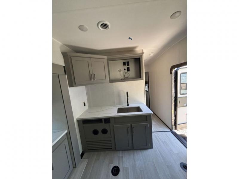 Each Raptor Carbon Series toy hauler travel trailer is built with a 10" I-beam frame, laminated sidewalls with double-welded aluminum construction, plus Dexter E-Z lube 6,000 lb. axles with self-adjusting brakes, electric stabilizer jacks for easy setup, and MORyde step above steps for stability on any type of ground you camp on. On the interior, designer style vinyl flooring throughout, pull-down window shades for privacy at night, and LED lighting throughout. You will appreciate the Girard tankless on-demand water heater for showering both inside and out, and you can also customize your trailer by adding a few options if you wish. Choose your favorite model today!