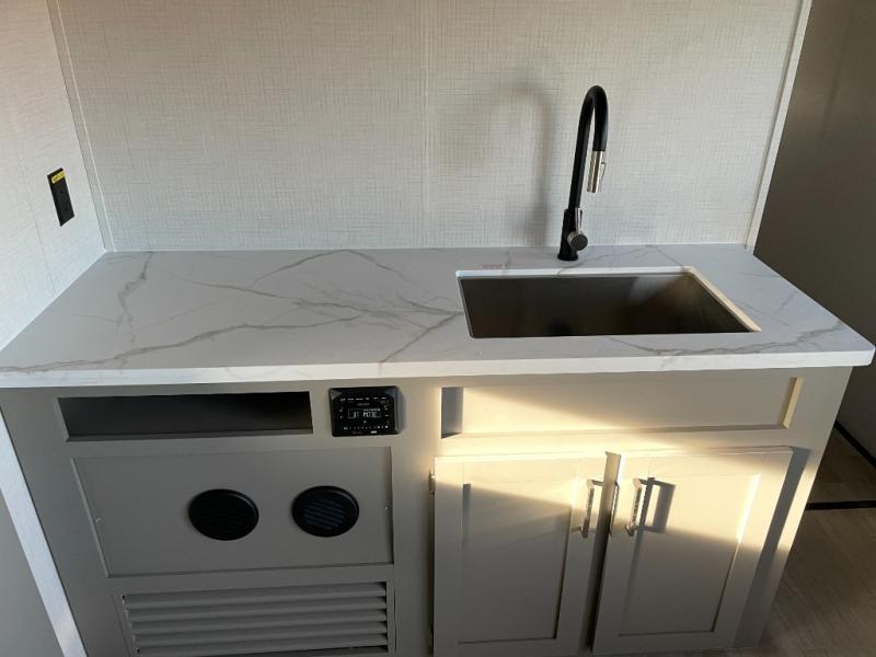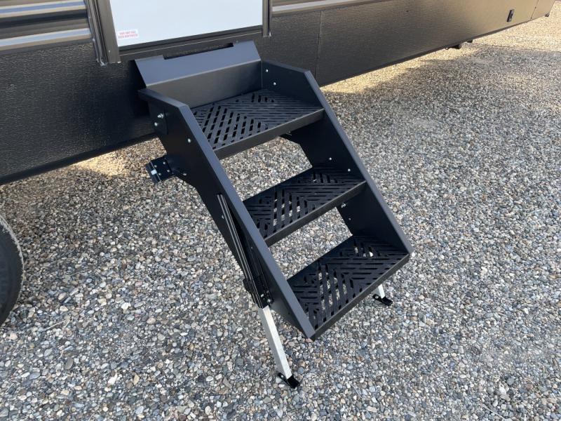 Each Raptor Carbon Series toy hauler travel trailer is built with a 10" I-beam frame, laminated sidewalls with double-welded aluminum construction, plus Dexter E-Z lube 6,000 lb. axles with self-adjusting brakes, electric stabilizer jacks for easy setup, and MORyde step above steps for stability on any type of ground you camp on. On the interior, designer style vinyl flooring throughout, pull-down window shades for privacy at night, and LED lighting throughout. You will appreciate the Girard tankless on-demand water heater for showering both inside and out, and you can also customize your trailer by adding a few options if you wish. Choose your favorite model today!