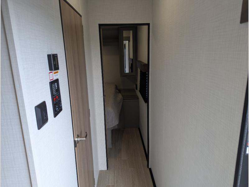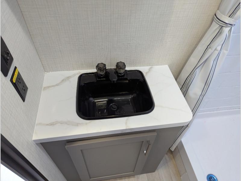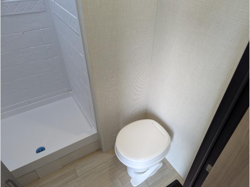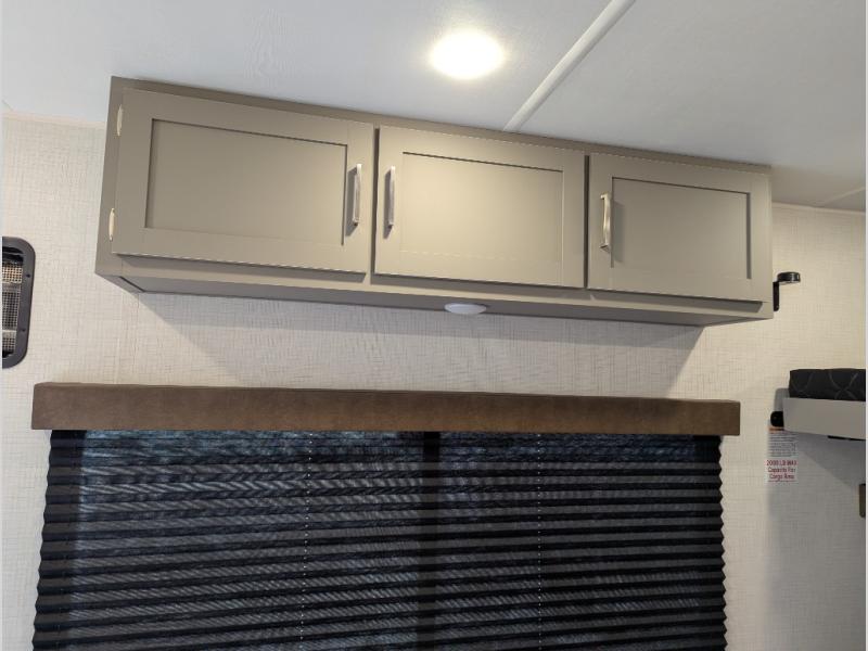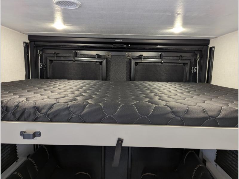 Each Raptor Carbon Series toy hauler travel trailer is built with a 10" I-beam frame, and aluminum sidewalls, a SuperFlex roof membrane, and new sleek exterior graphics! There is also a lighted pass-through storage outside, along with a hot/cold shower, MORryde StepAbove entry steps, and an exterior convenience center for all your hookups. Head inside to find refreshed interior decor, pull-down window shades, soft-close hardwood cabinetry with hidden hinges, and pressed countertops to name a few comforts!