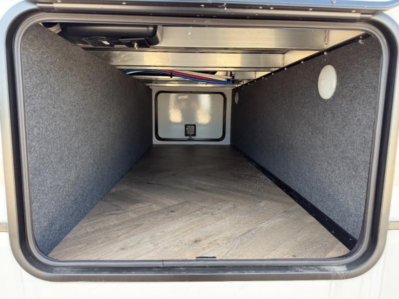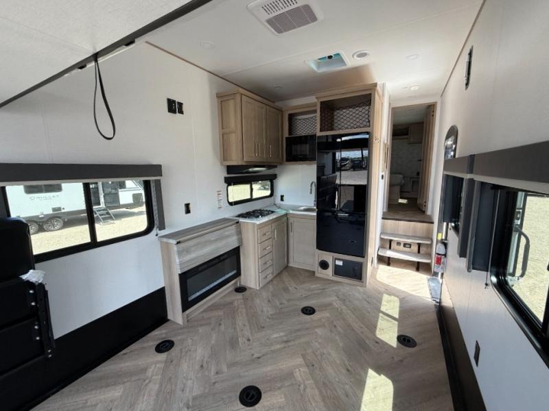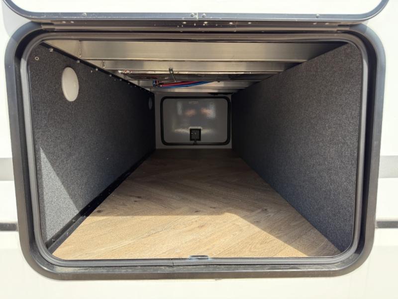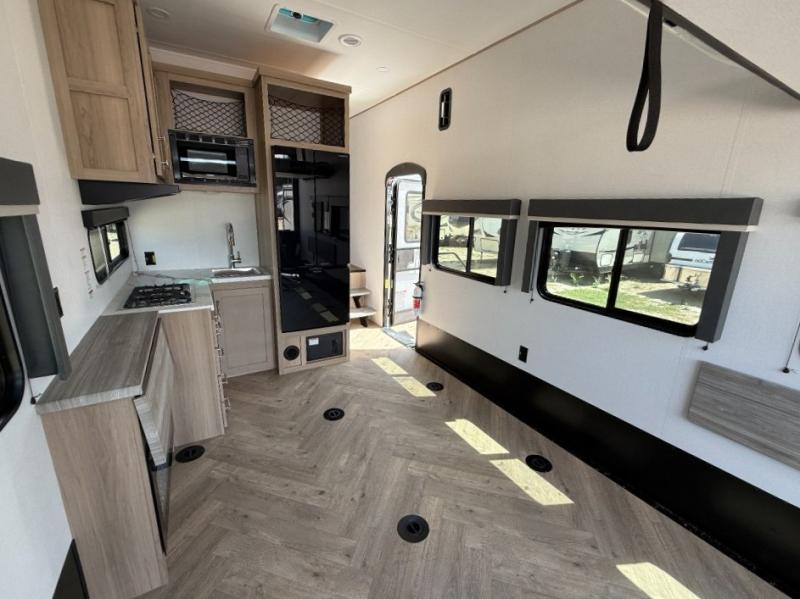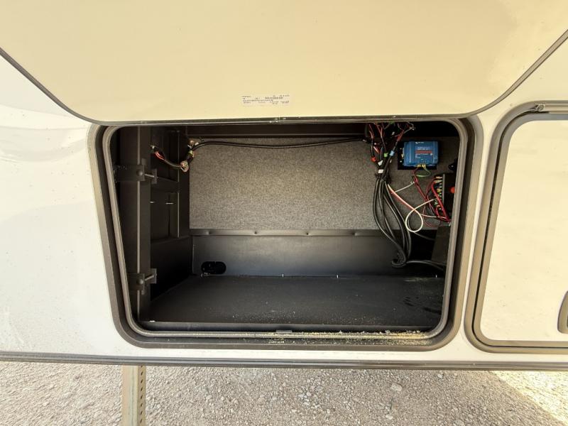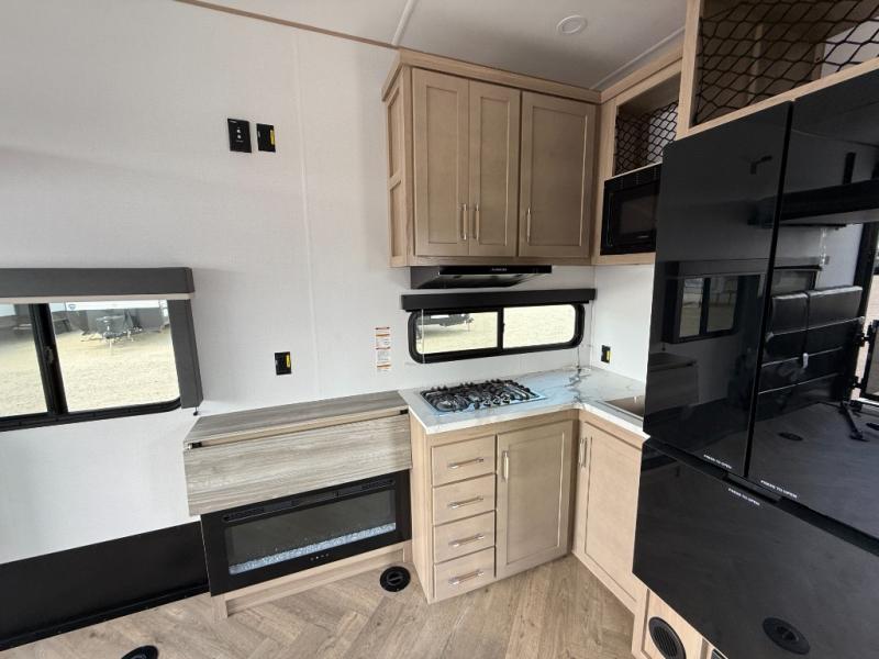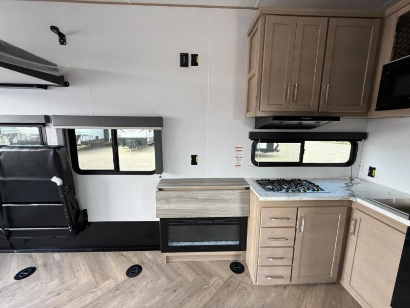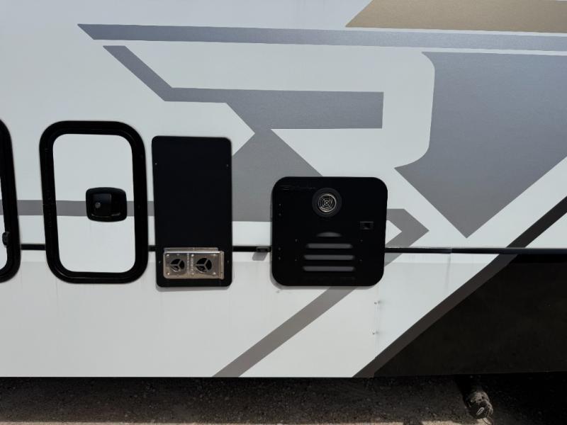 With any Keystone Raptor Carbon Series toy hauler fifth wheel, you will enjoy a new chassis with a larger pass-through storage and a new front cap with LED lighting. There is also an upgraded MORryde CRE3000 suspension, a 6-point hydraulic Level-Up system, and a Nautilus exterior convenience center to easily access all your hookups. Inside, you'll love the hardwood soft-close cabinet doors, pressed countertops, and Thomas Payne furniture. The Extreme Weather Package will add protection against the elements, and the on-demand tankless water heater will provide endless hot showers!