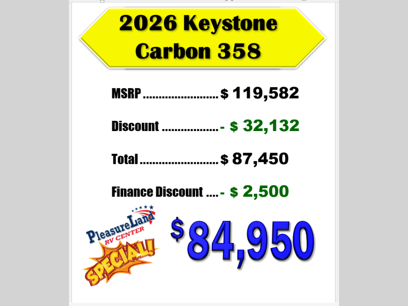 New 2026 Keystone RV Raptor Carbon Series 358 Toy Hauler Fifth Wheel