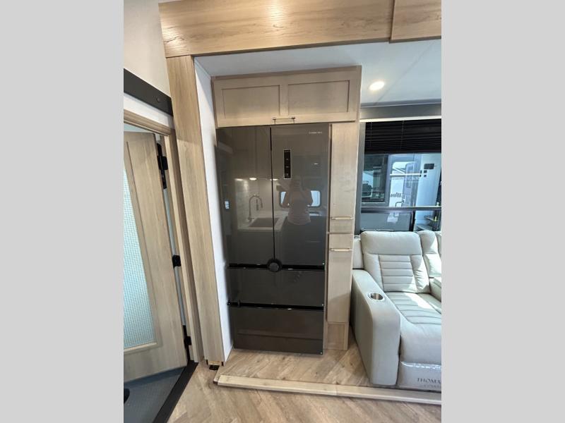 With any Keystone Raptor Carbon Series toy hauler, you will receive a rugged construction from the industry-leading patented 5,000 lb. capacity tie-downs that are welded to the frame to increase hauling safety and security, plus the Dyna Span floor decking in the garage. There is off-grid camping with the Solar Flex which delivers an affordable, high-quality RV solar energy system, and a comfortable interior with the exclusive Omni-Chill technology that offers high-efficiency air conditioning and maximum cooling. Other unexpected conveniences include soft-close hardwood cabinetry allowing you to sneak snacks without others noticing, and designer style flooring throughout for easy care and a stylish look. And each Raptor Carbon Series includes Keystone Exclusives! Now all you have to do is take charge of how you camp in a toy hauler fifth wheel or travel trailer!