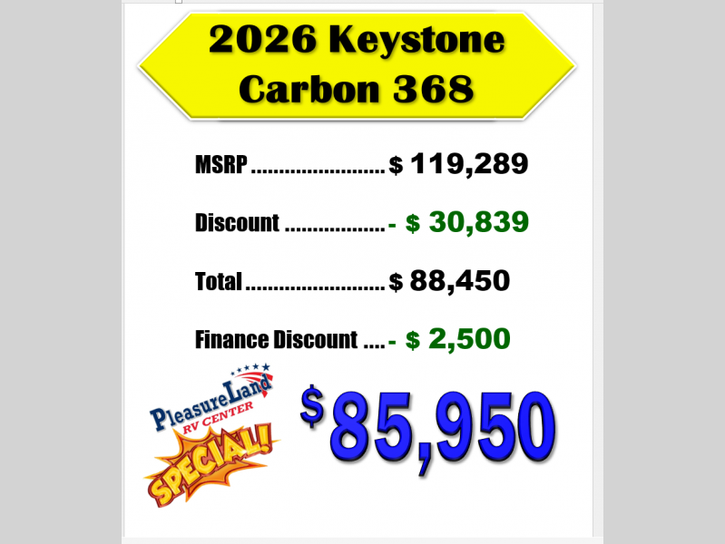 New 2026 Keystone RV Raptor Carbon Series 368 Toy Hauler Fifth Wheel