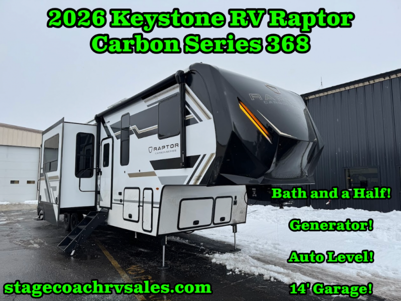 New 2026 Keystone RV Raptor Carbon Series 368 Toy Hauler Fifth Wheel