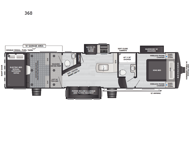 Keystone Raptor Carbon Series toy hauler 368 highlights: