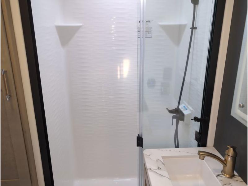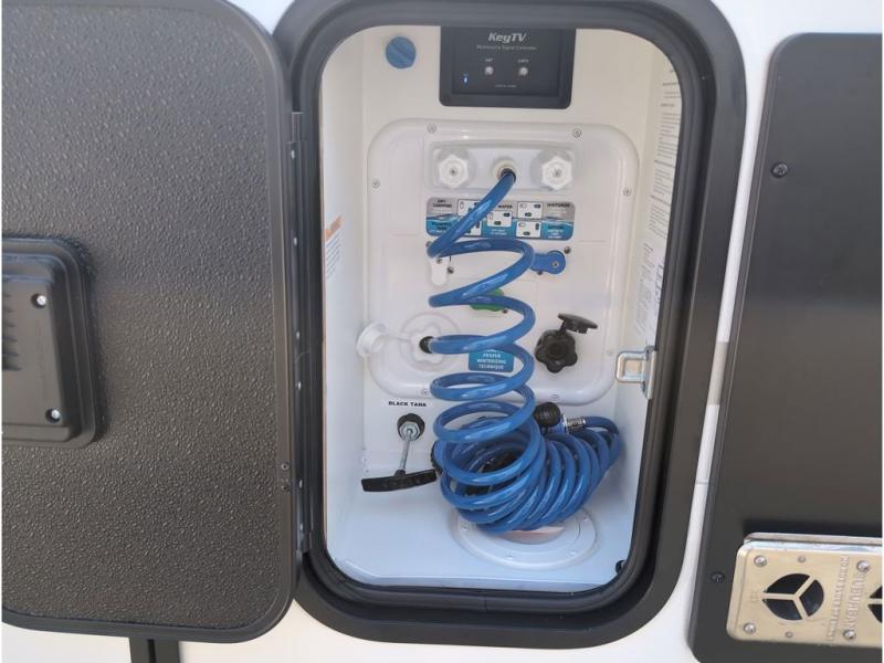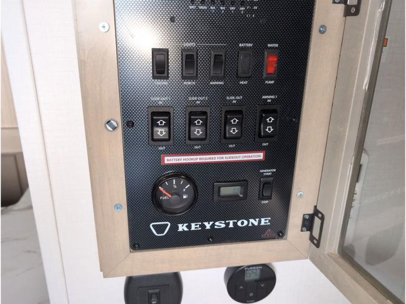 With any Keystone Raptor Carbon Series toy hauler fifth wheel, you will enjoy a new chassis with a larger pass-through storage and a new front cap with LED lighting. There is also an upgraded MORryde CRE3000 suspension, a 6-point hydraulic Level-Up system, and a Nautilus exterior convenience center to easily access all your hookups. Inside, you'll love the hardwood soft-close cabinet doors, pressed countertops, and Thomas Payne furniture. The Extreme Weather Package will add protection against the elements, and the on-demand tankless water heater will provide endless hot showers!