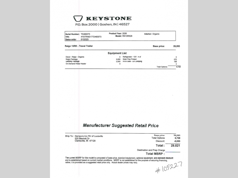 New 2026 Keystone RV Reign 13RK Travel Trailer