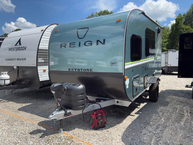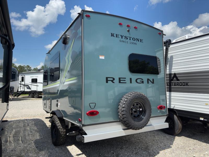 The Keystone Reign 13RK is the perfect lightweight travel trailer for couples or solo adventurers who value functionality, style, and comfort. With a sleek single-axle design and compact footprint, this unit is easy to tow and maneuver, yet it packs all the essentials for a memorable camping experience.