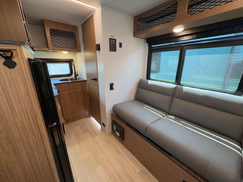 Inside, you’ll find a surprisingly spacious layout featuring a comfortable jack knife sofa, ideal for lounging or hosting guests. At night, rest easy on the generously sized 54" x 74" bed tucked away to maximize floor space. Thoughtfully designed overhead cabinets throughout the unit provide smart storage solutions for clothes, cookware, and camping gear.