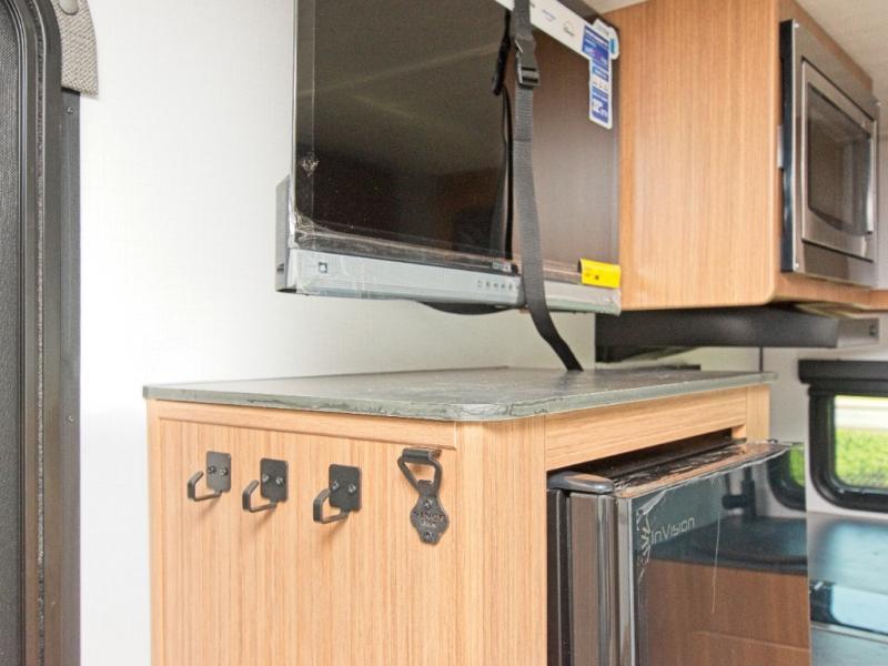 Catch a movie or keep up with your favorite shows during downtime. There's plenty of overhead cabinet space to store gear, snacks, games, and more. -