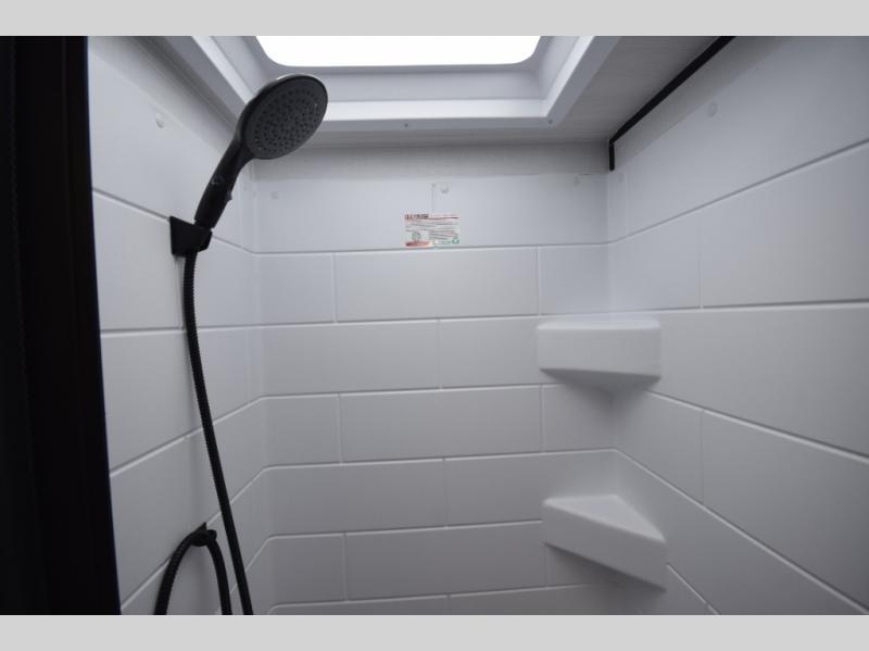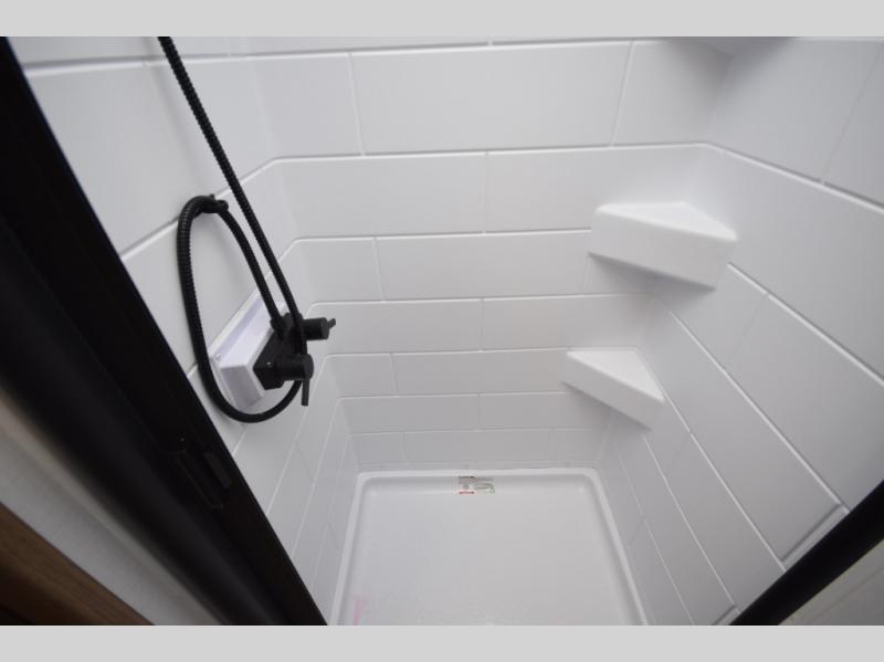 No more campground bathroom runs — enjoy the convenience of a private full bath, complete with modern fixtures. -